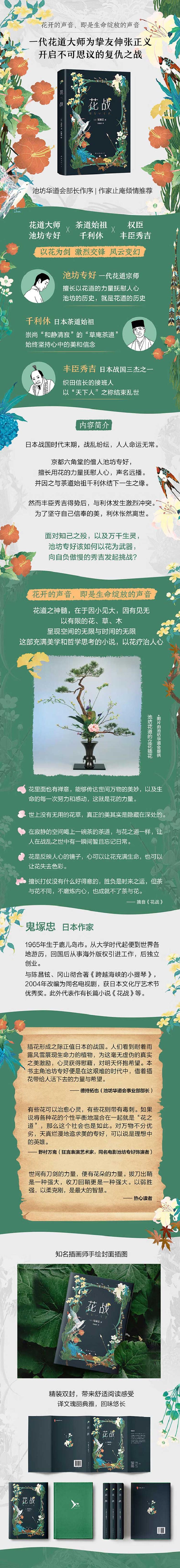 《花战》描绘了花道大家池坊专好为挚友千利休伸张正义,以花胜剑的故事。花开的声音,即是生命绽放的声音。这部充满美学和哲学思考的小说,令人从中感悟生命的力量。