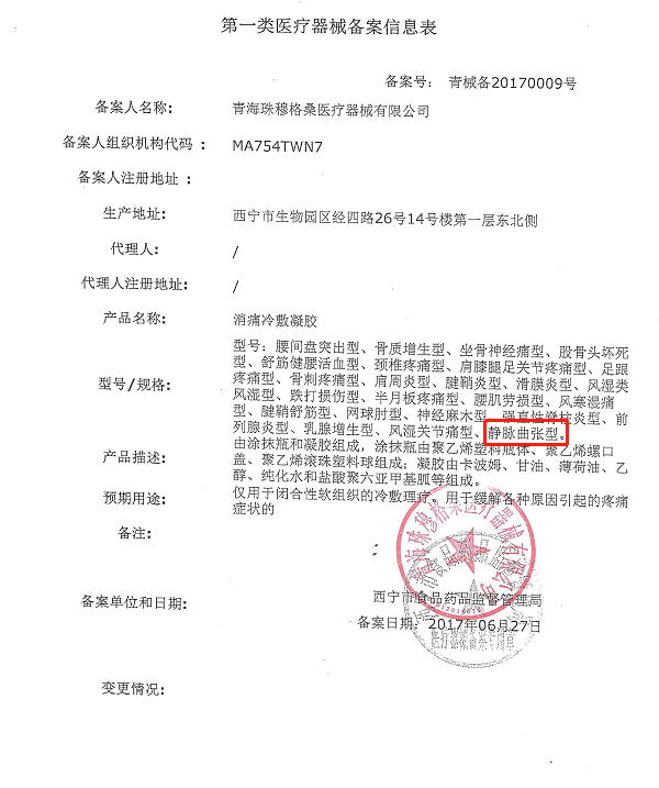 静脉曲张冷敷凝胶,有相关医疗备案登记才敢放心购买!