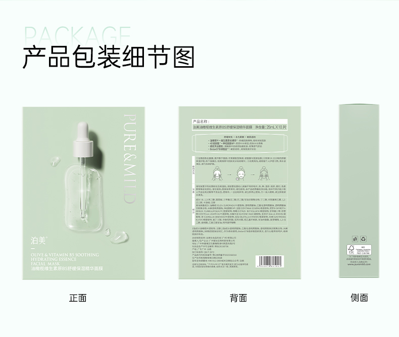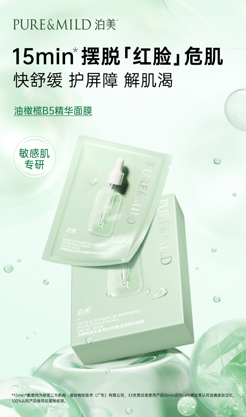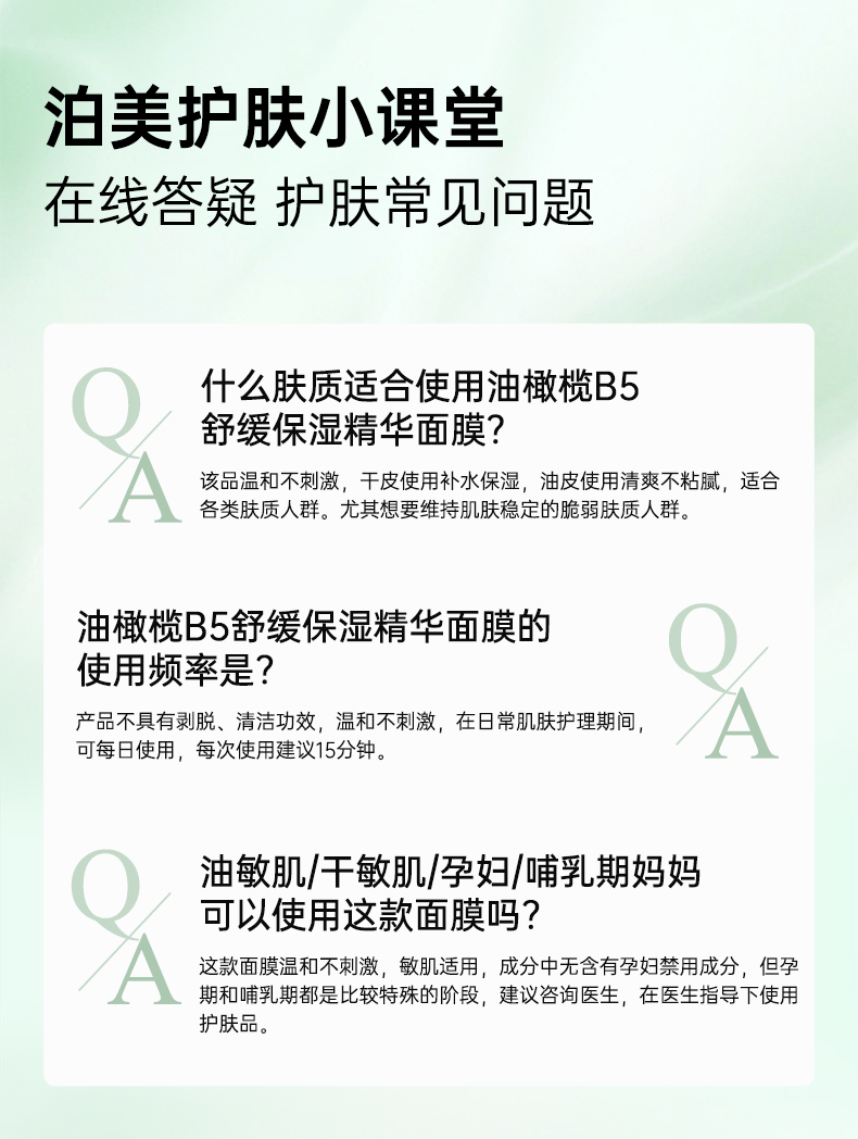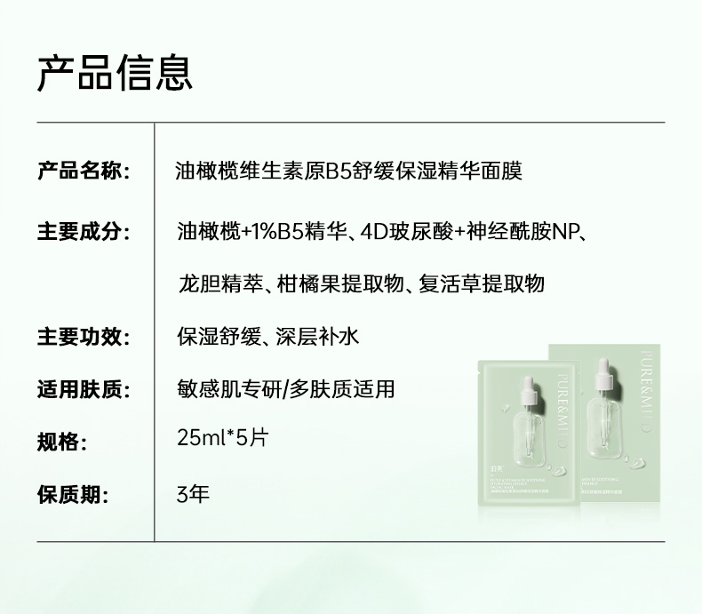 【品牌直发】泊美油橄榄维生素原B5舒缓保湿精华面膜25ml*10片
