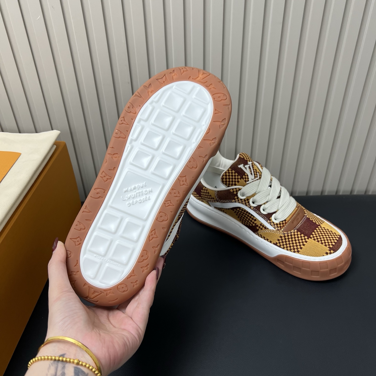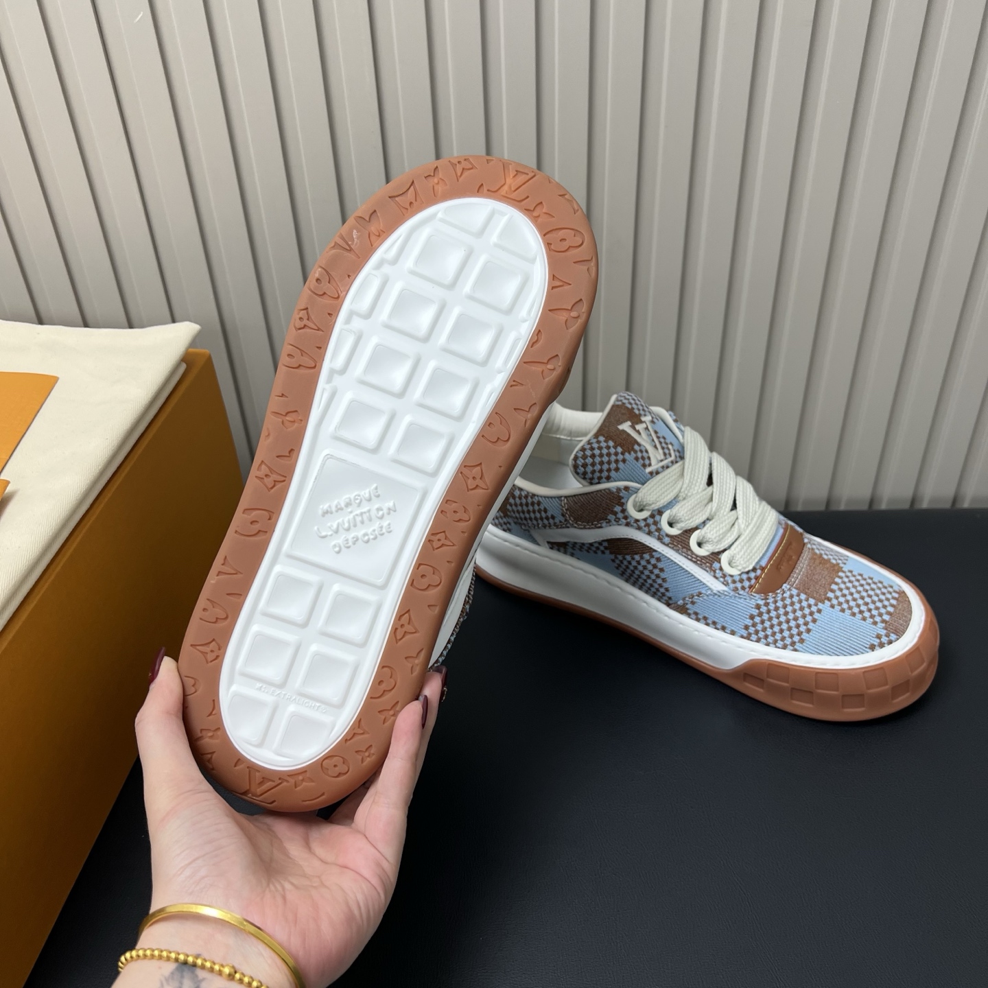 选的这几个颜色都是男款的,也只有男码,经典格纹式样,内里是牛皮的,外面一层格纹织布,更有风格