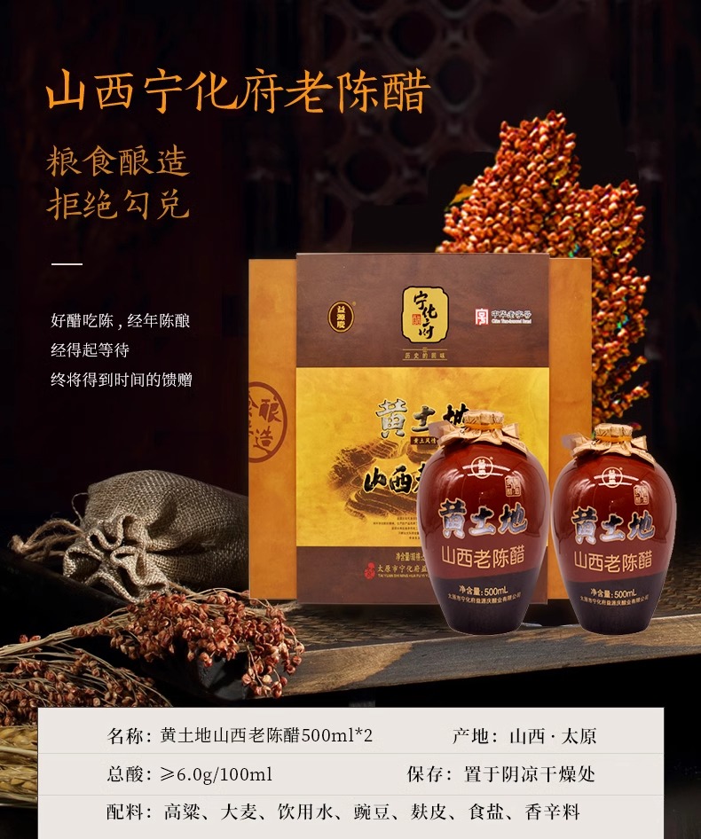 山西宁化府老陈醋黄土地礼盒500ml*2手工10中秋礼盒酿造GB/T19777