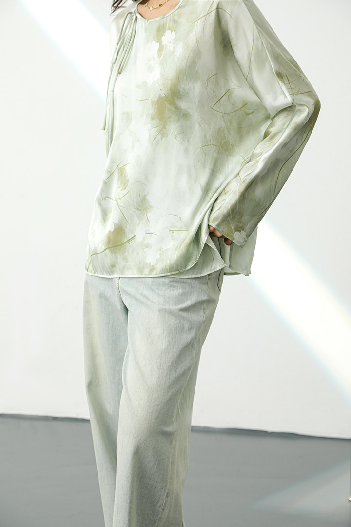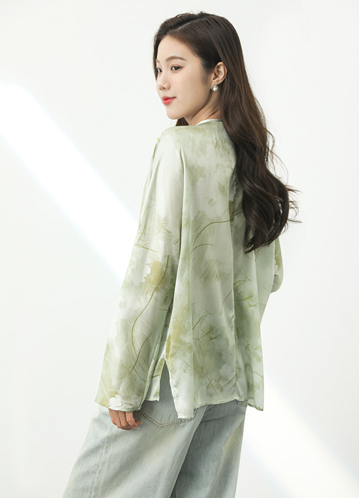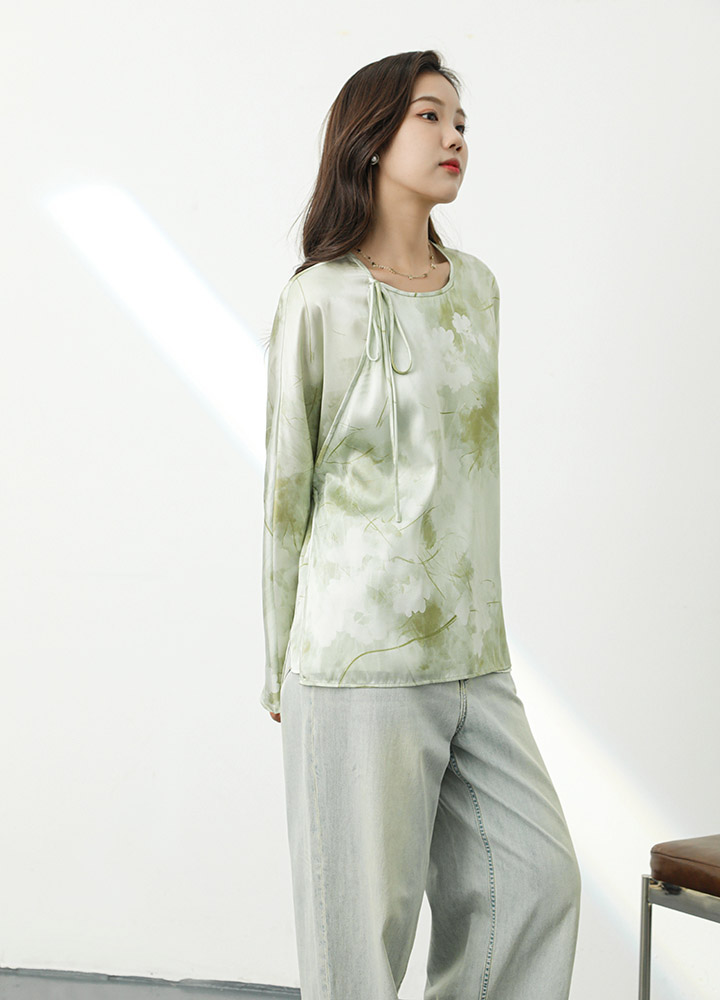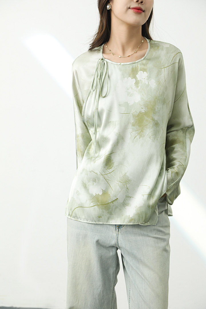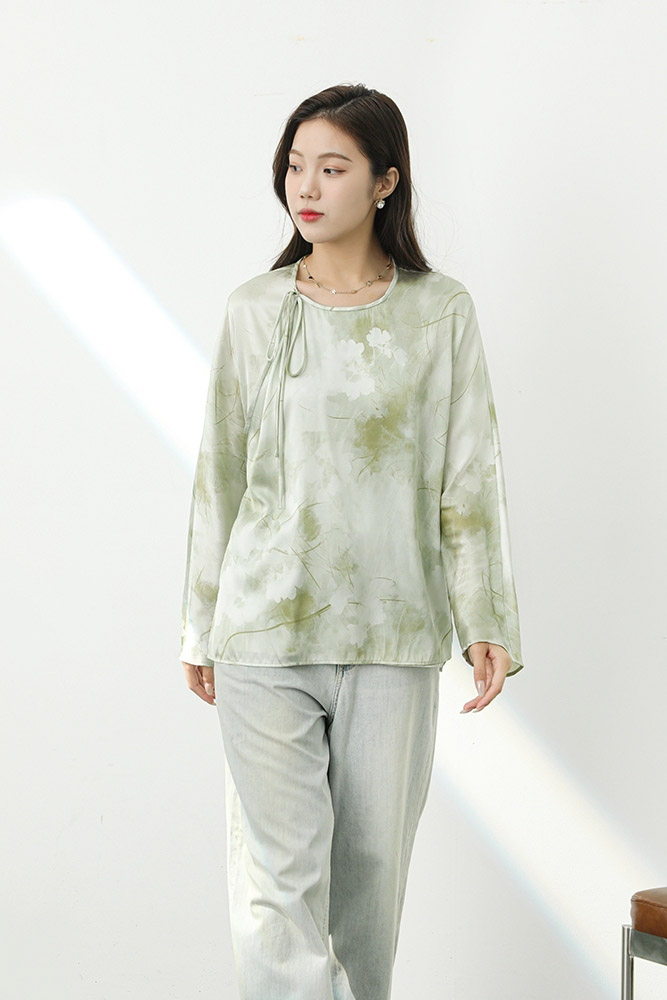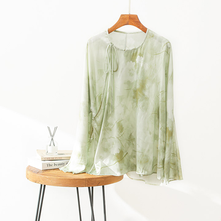 洛诗琳12010新中式气质衬衫2025夏季新款清新国风真丝上衣1005