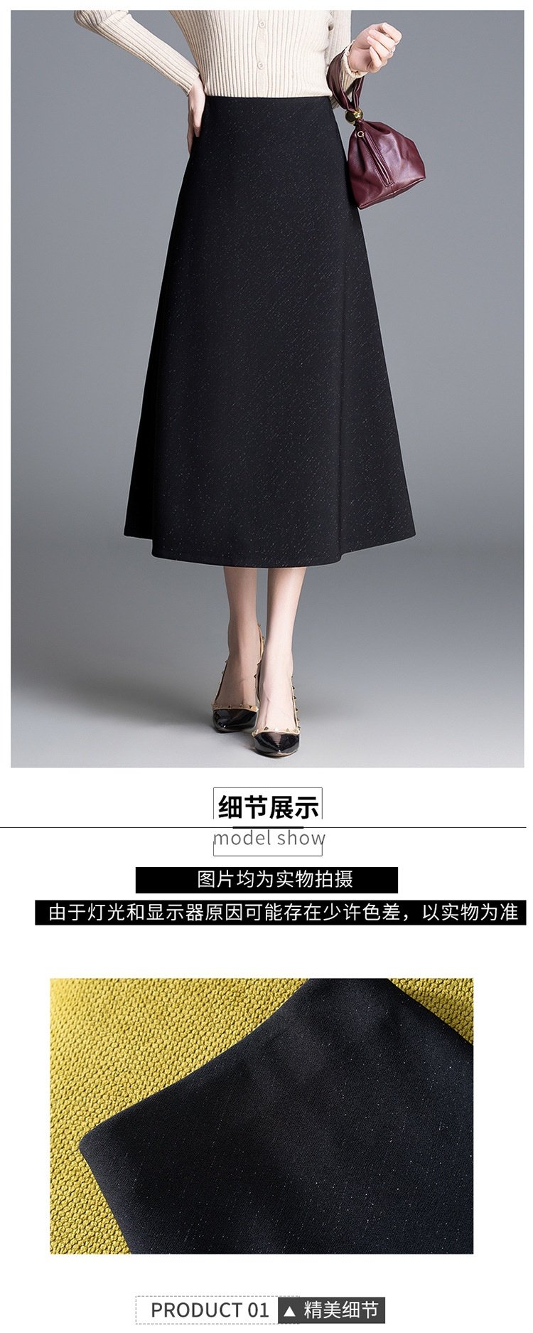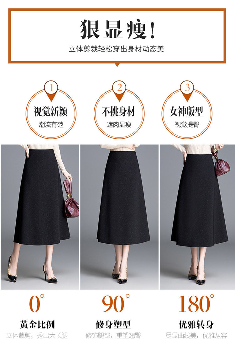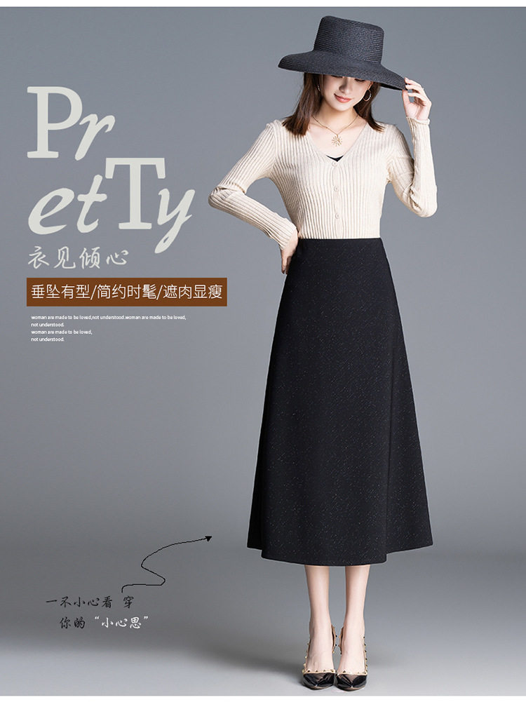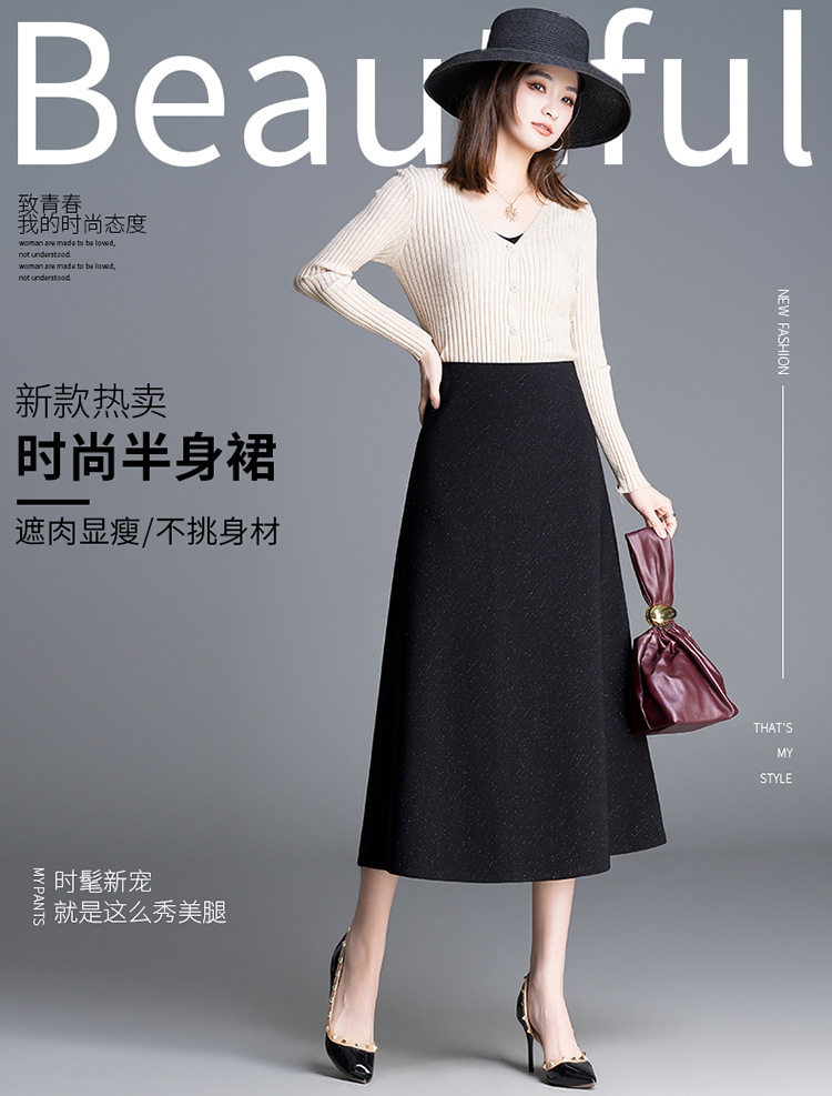 「自」全新升级【铂金会员128/天猫169/差价41】(24257)洛诗琳百搭时尚细闪半身裙2026春季中长裙高腰大摆A字裙