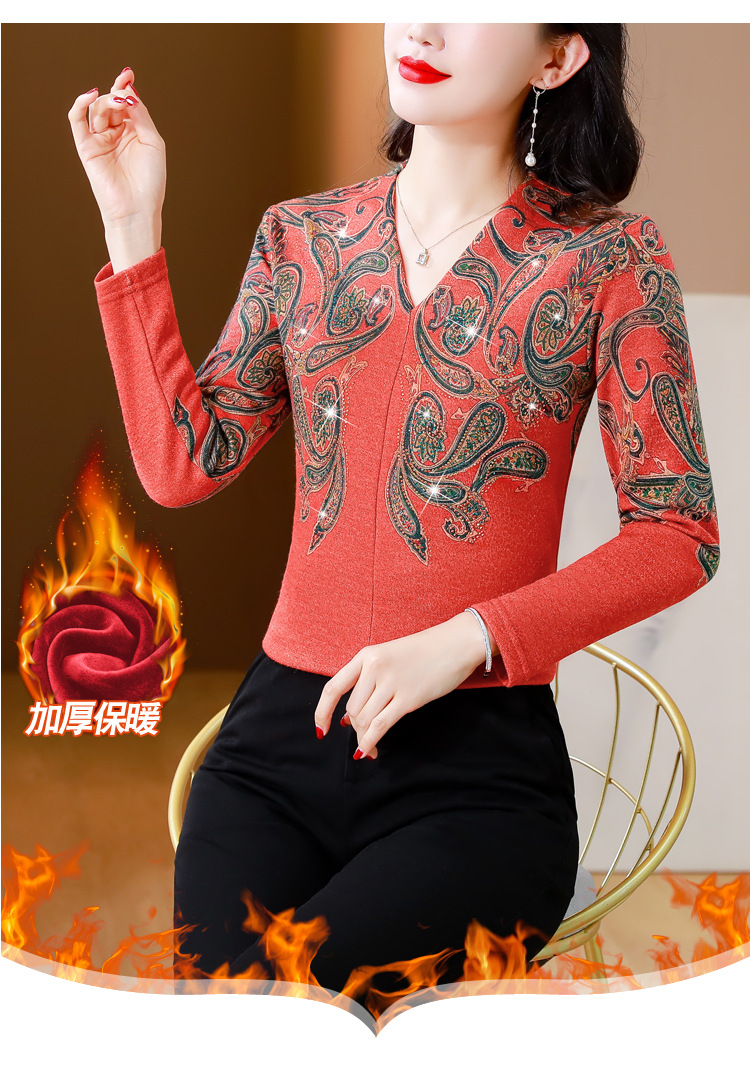 KQL356H7106 2025秋冬新款洋气减龄V领长袖打底衫加厚澳绒保暖妈妈t恤小衫