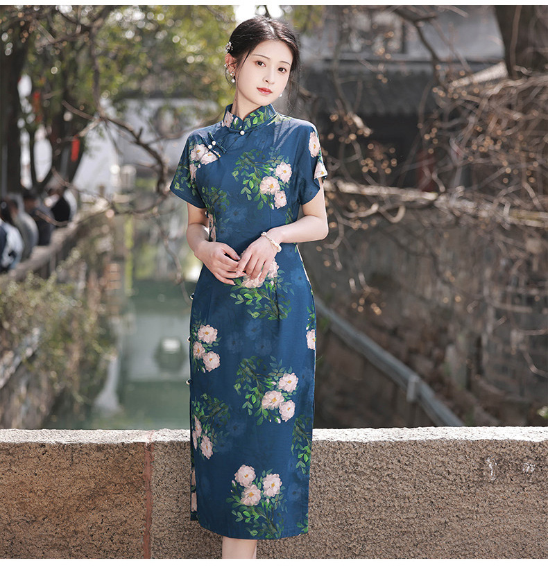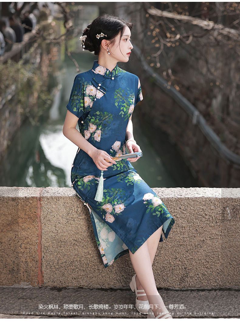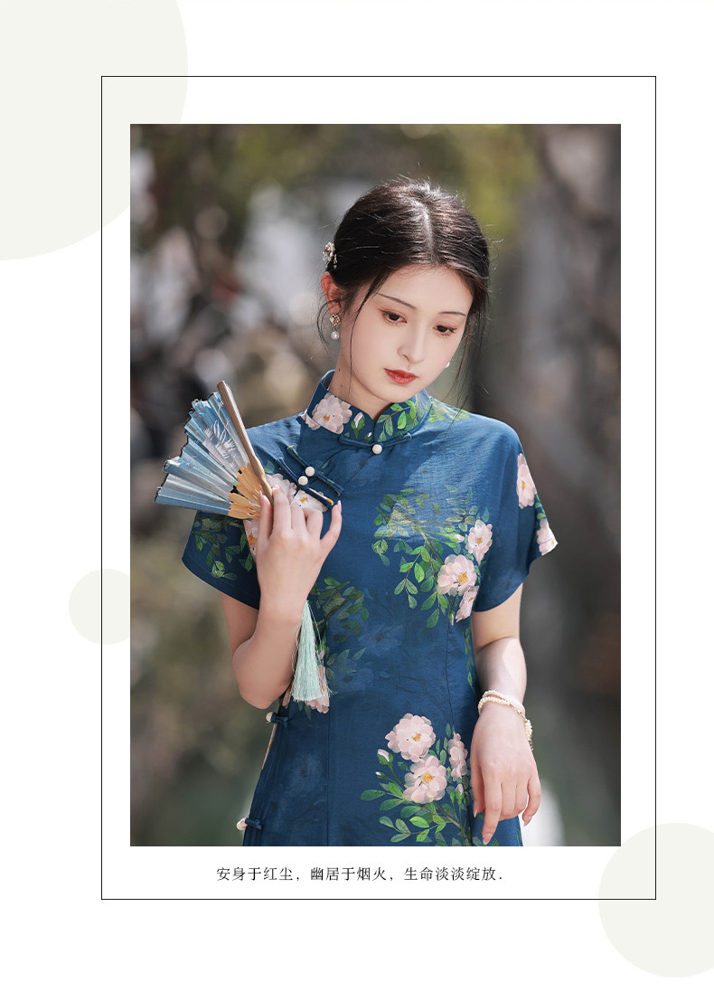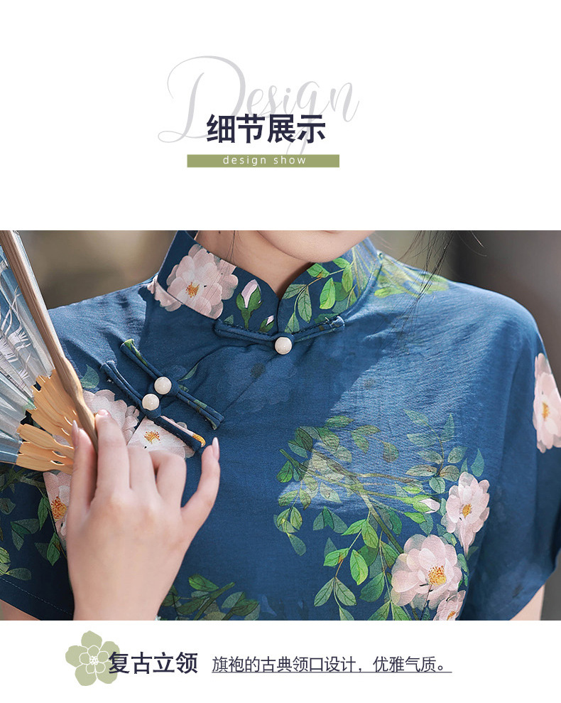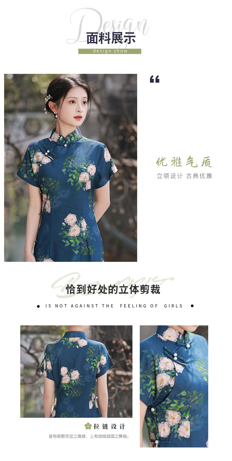 TX春夏全开襟一片式古法旗袍连衣裙日常显瘦修身