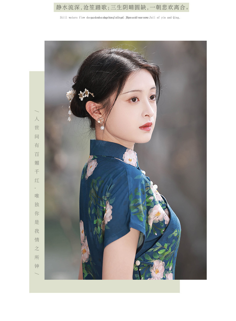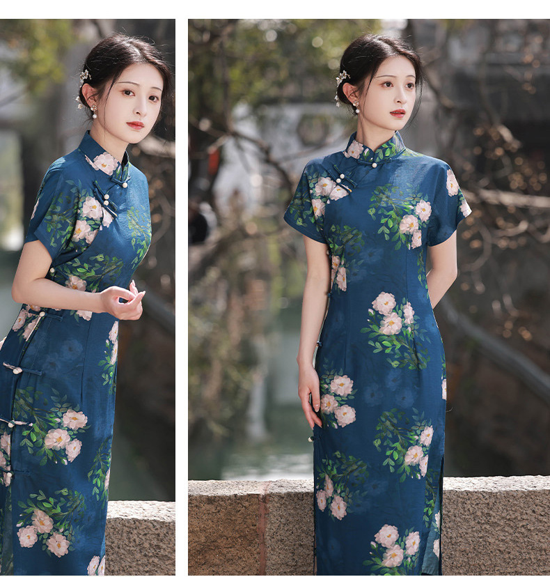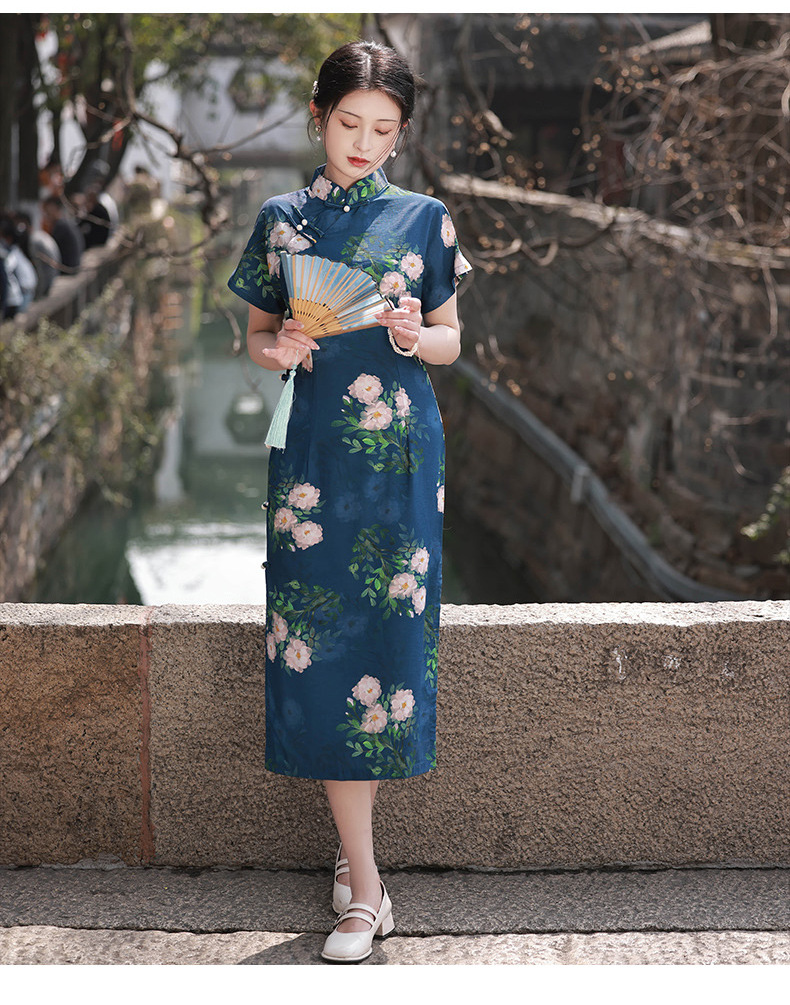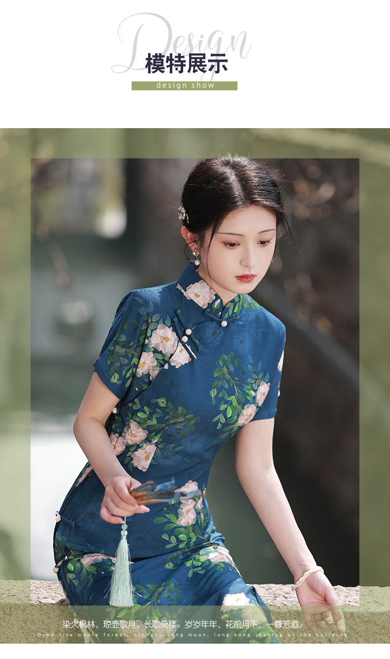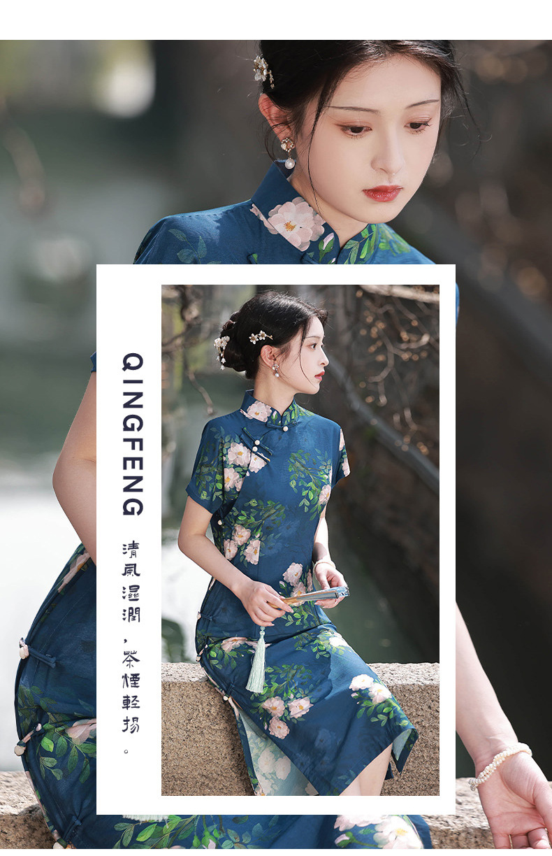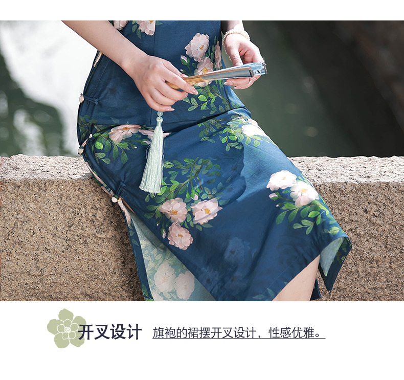 TX春夏全开襟一片式古法旗袍连衣裙日常显瘦修身