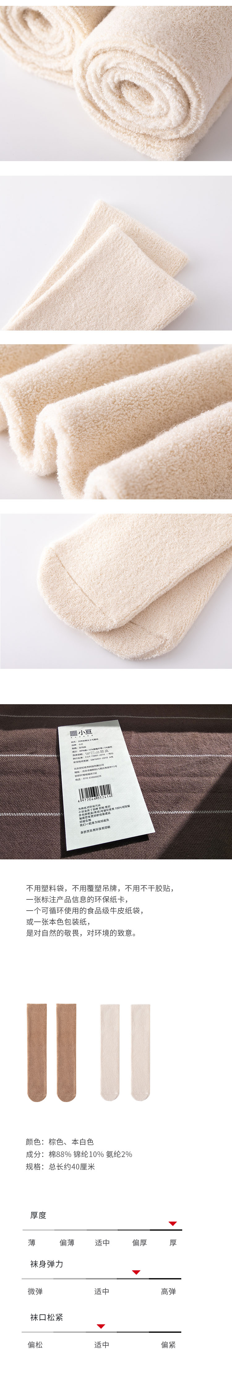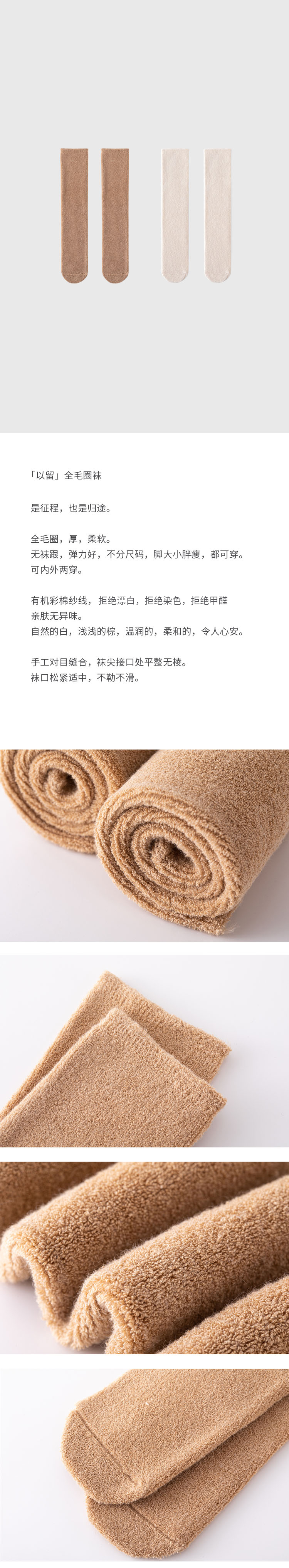 无跟全毛圈袜 | 本白色/棕色 男女均码 居家外出秋冬暖和彩棉袜子 小亘【贴身衣物一经售出非质量问题不退不换】