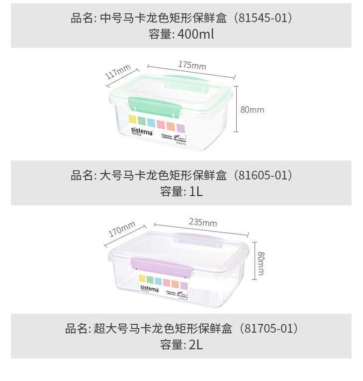 sistemaKlip It Pastels 马卡龙色矩形保鲜盒
