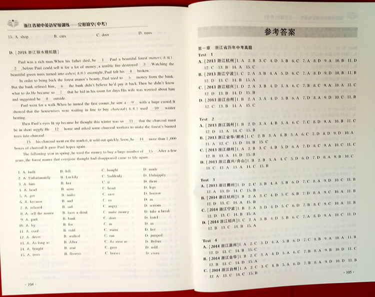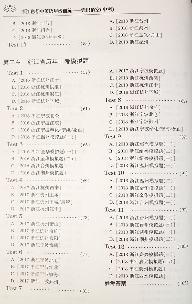 本书针对浙江省中考英语完形填空题型编写,优选了浙江省最近3年历年中考真题,淘汰了完形填空中常见或是在阅读理解中已经出现的篇目,使学生做一篇就能达到一篇的训练效果。中考真题的权~性和含金量毋庸置疑,学生通过一段时间的强化训练,能够充分了解命题形式和规律,才能在中考时得心应手。