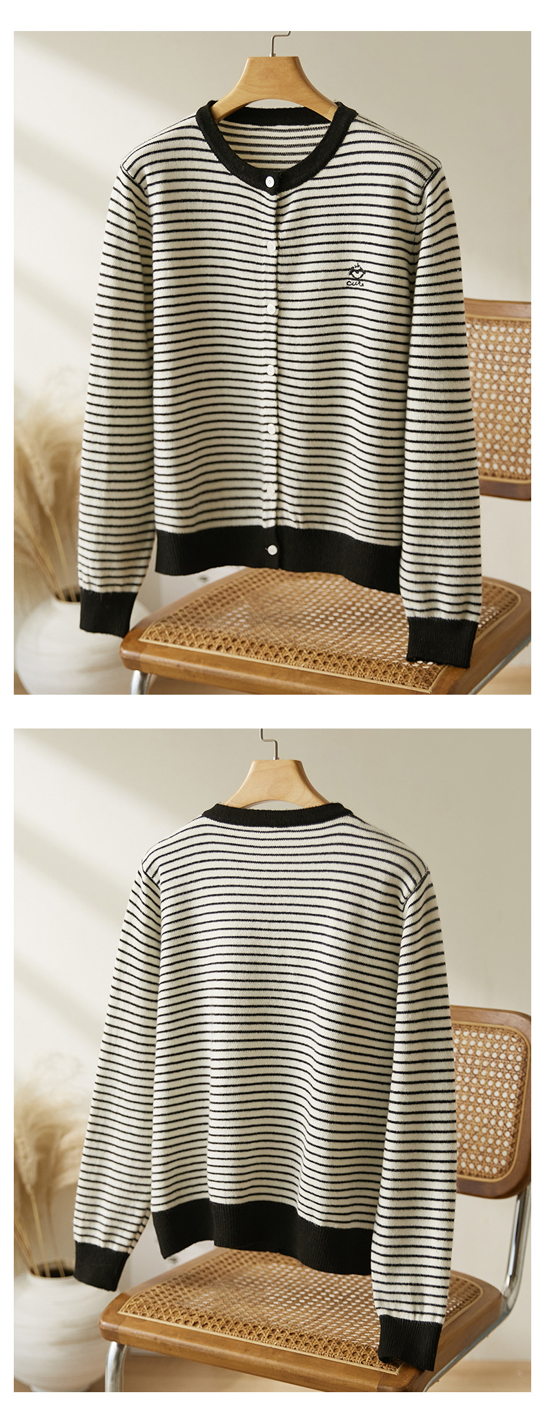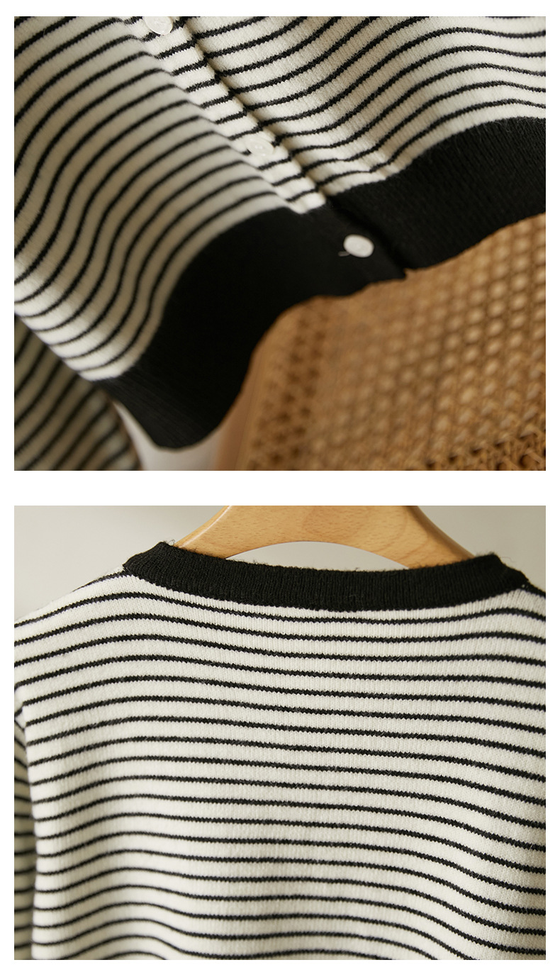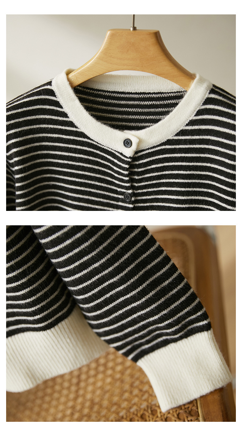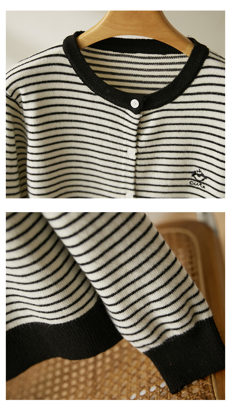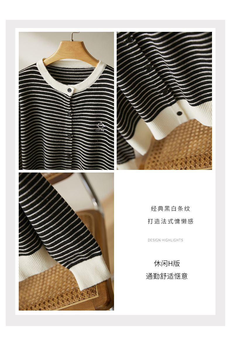 雀说经典简约黑白条纹针织衫女新款百搭时髦开衫毛衣AL57077