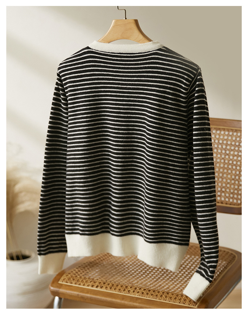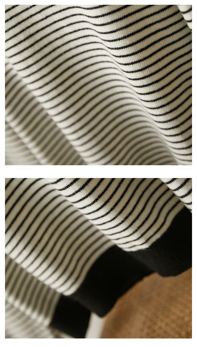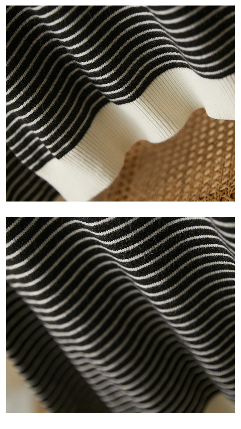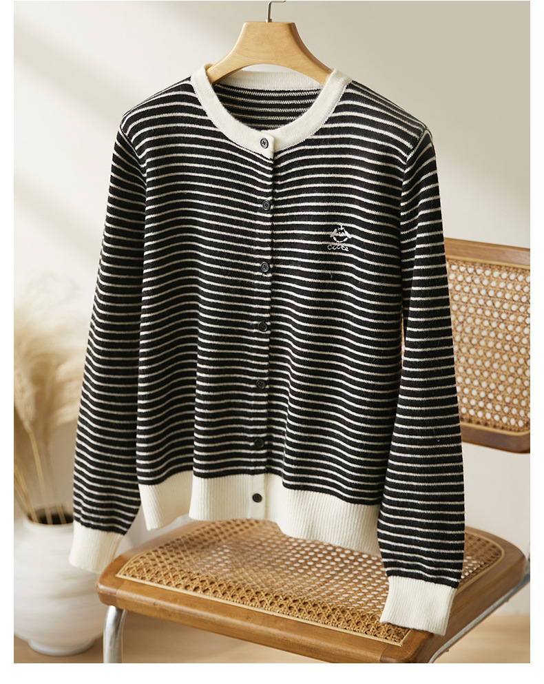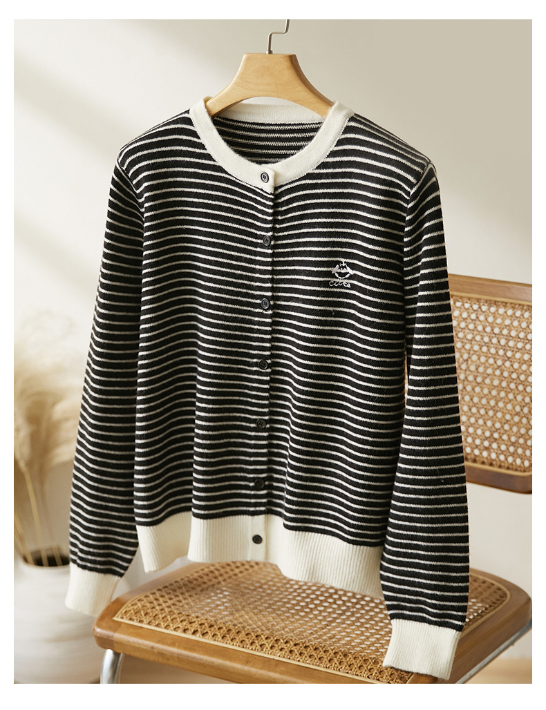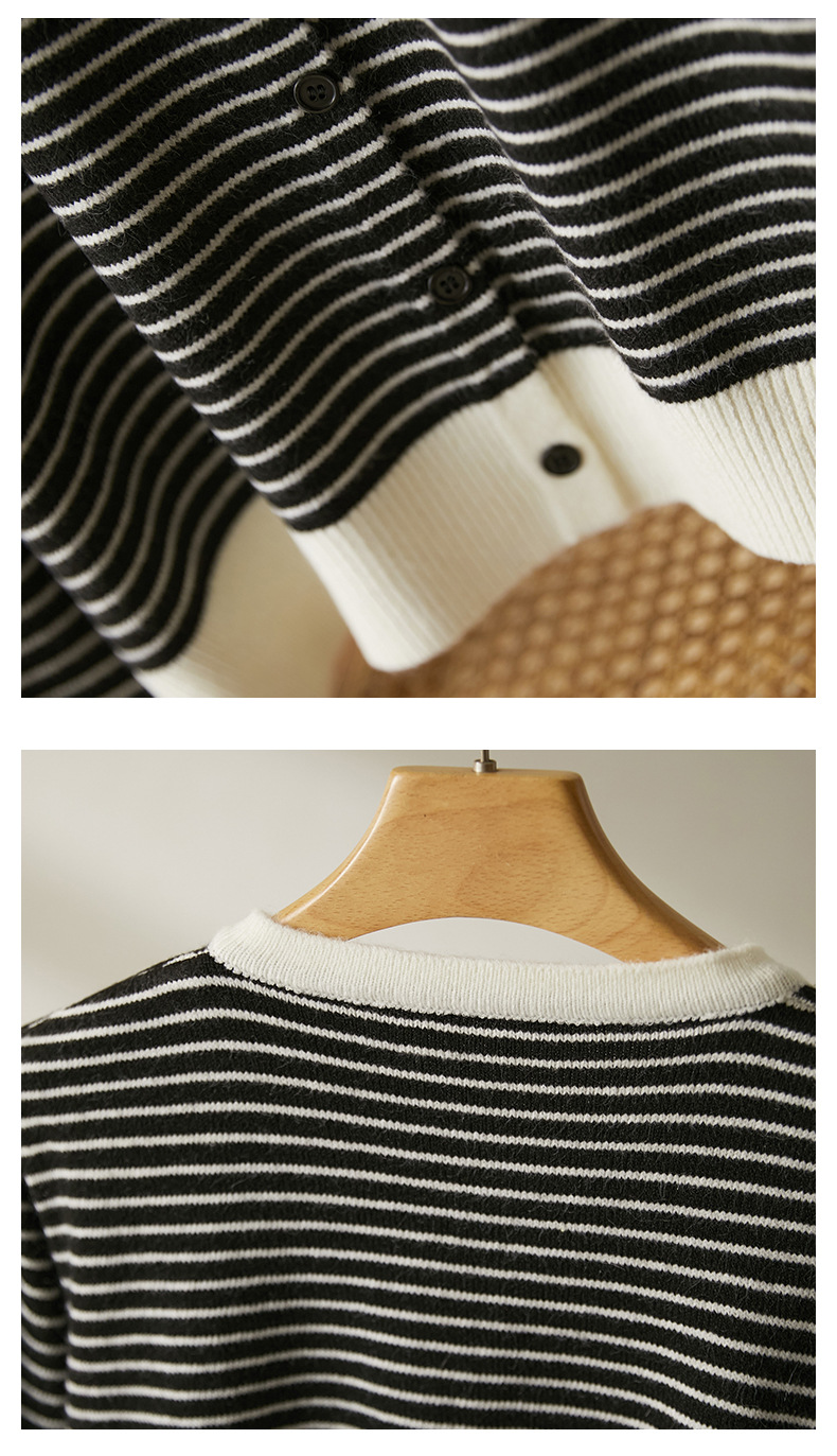 雀说经典简约黑白条纹针织衫女新款百搭时髦开衫毛衣AL57077
