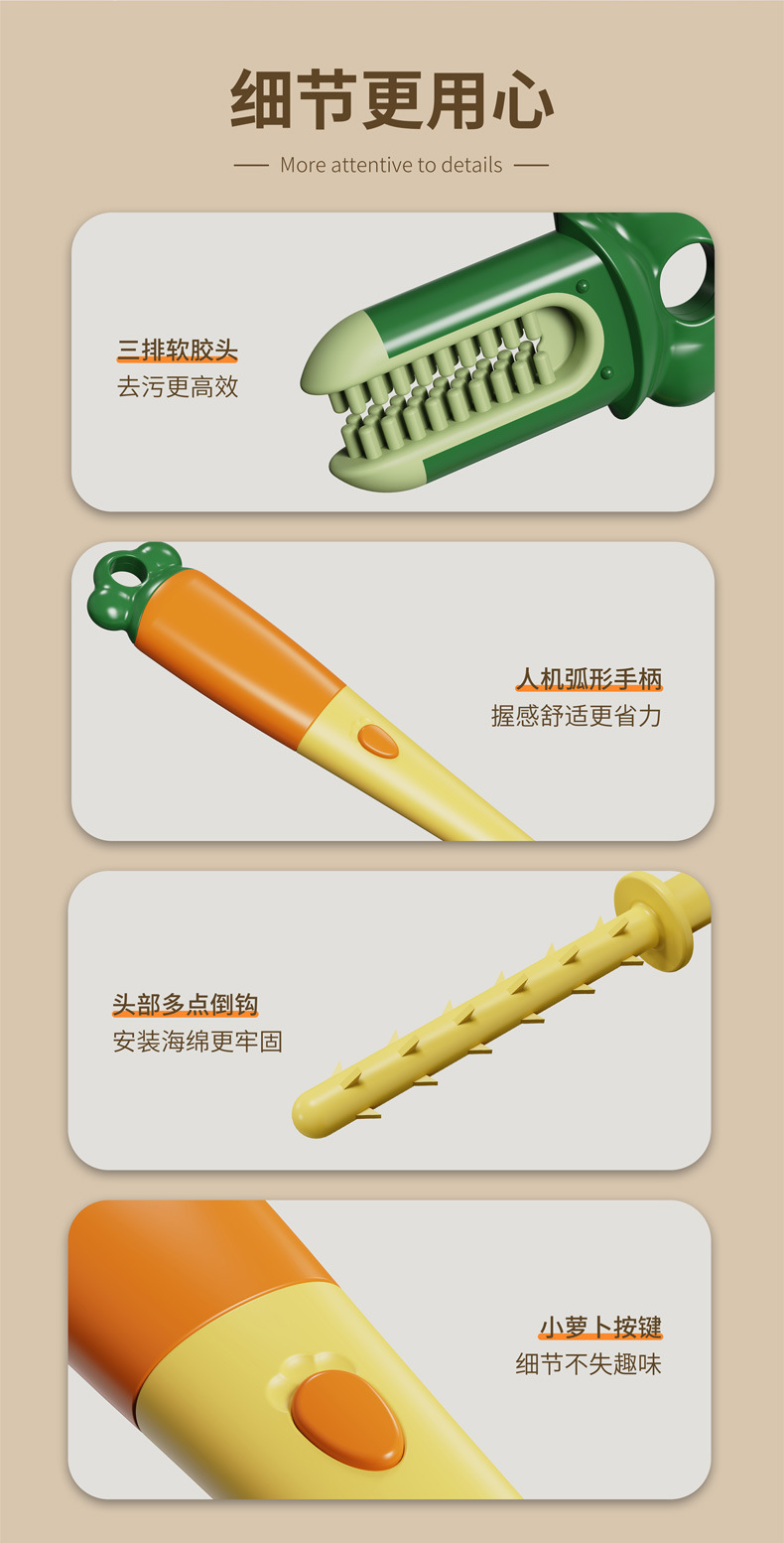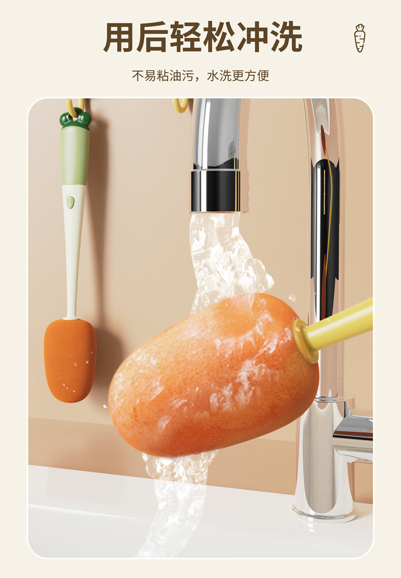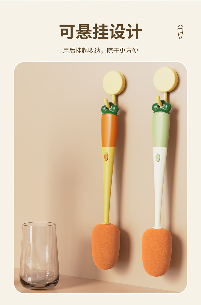 春艺-长柄三合一长柄刷可爱胡萝卜杯刷加长瓶刷清洁刷刷子家用清洁刷-Z仓