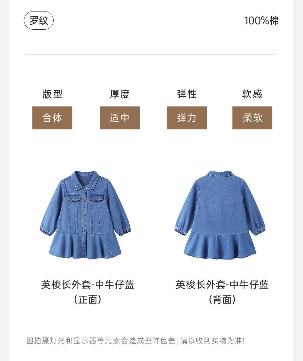 【商场同款】英氏儿童牛仔外套秋季女童外套裙新款长袖外套