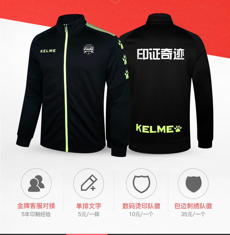kelme卡尔美官网运动外套男秋冬休闲外套中甲足球训练服针织夹克