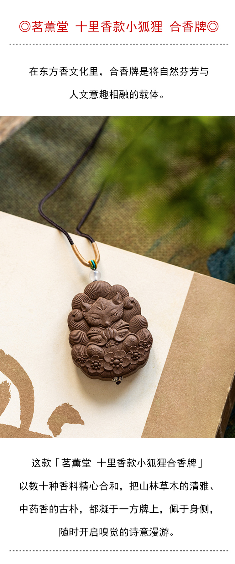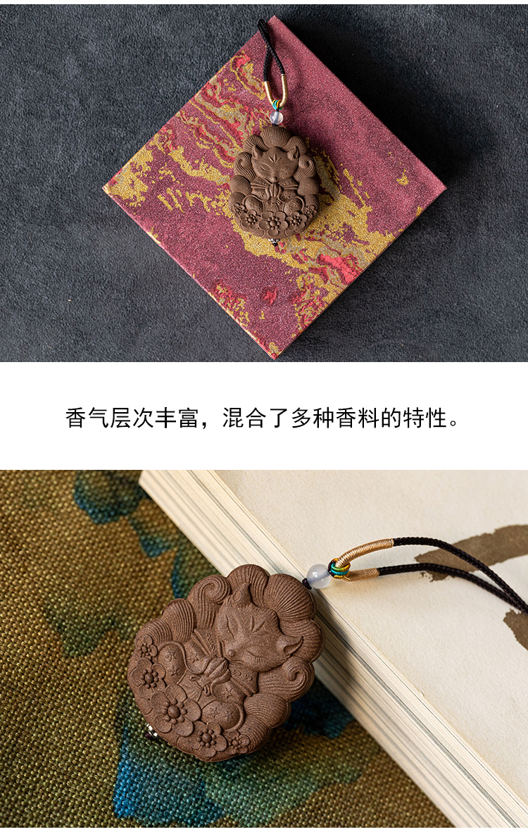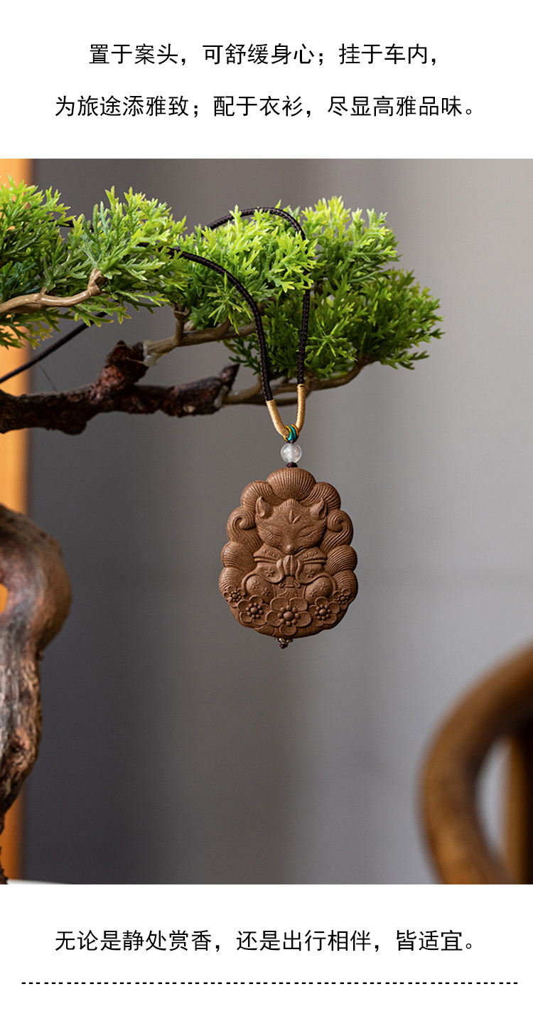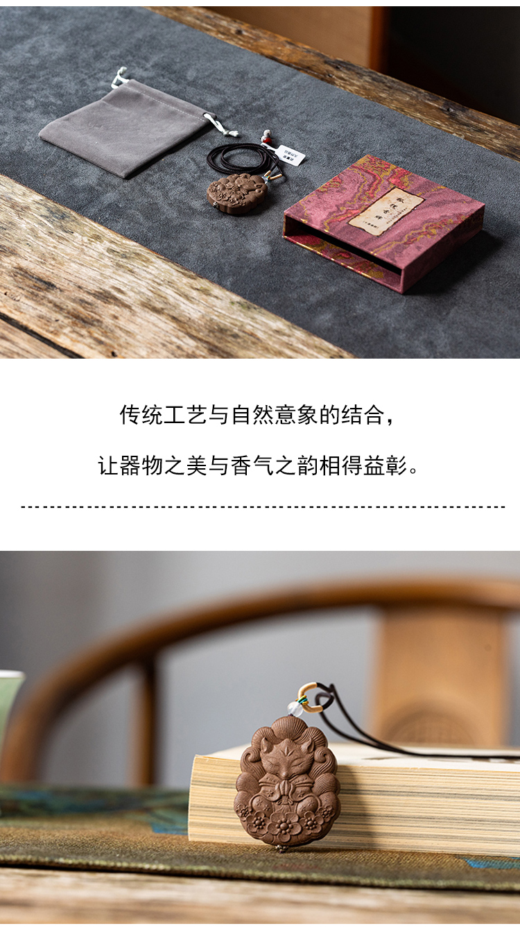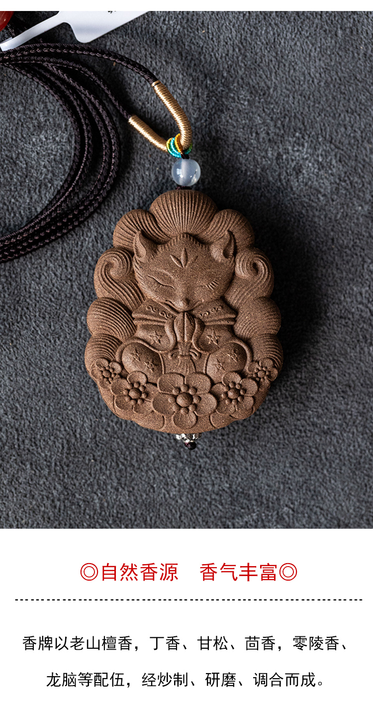 茶香记茗茗薰堂十里香款小狐狸合香牌天然手工制作吊坠脖挂留香