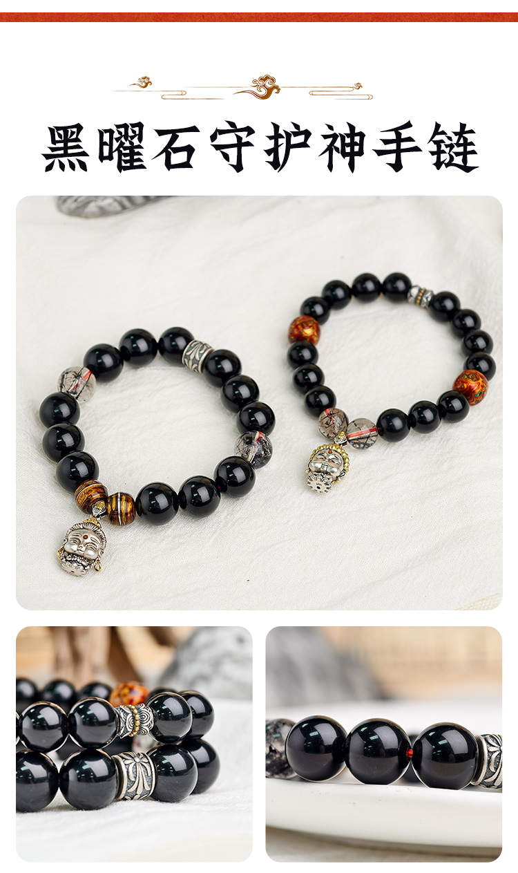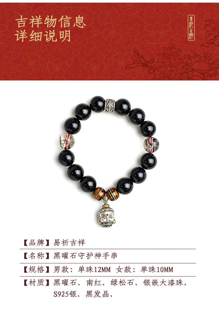 易祈吉祥黑曜石十二生肖本守护神手串工艺八大守护神S925银男女款黑发晶手链