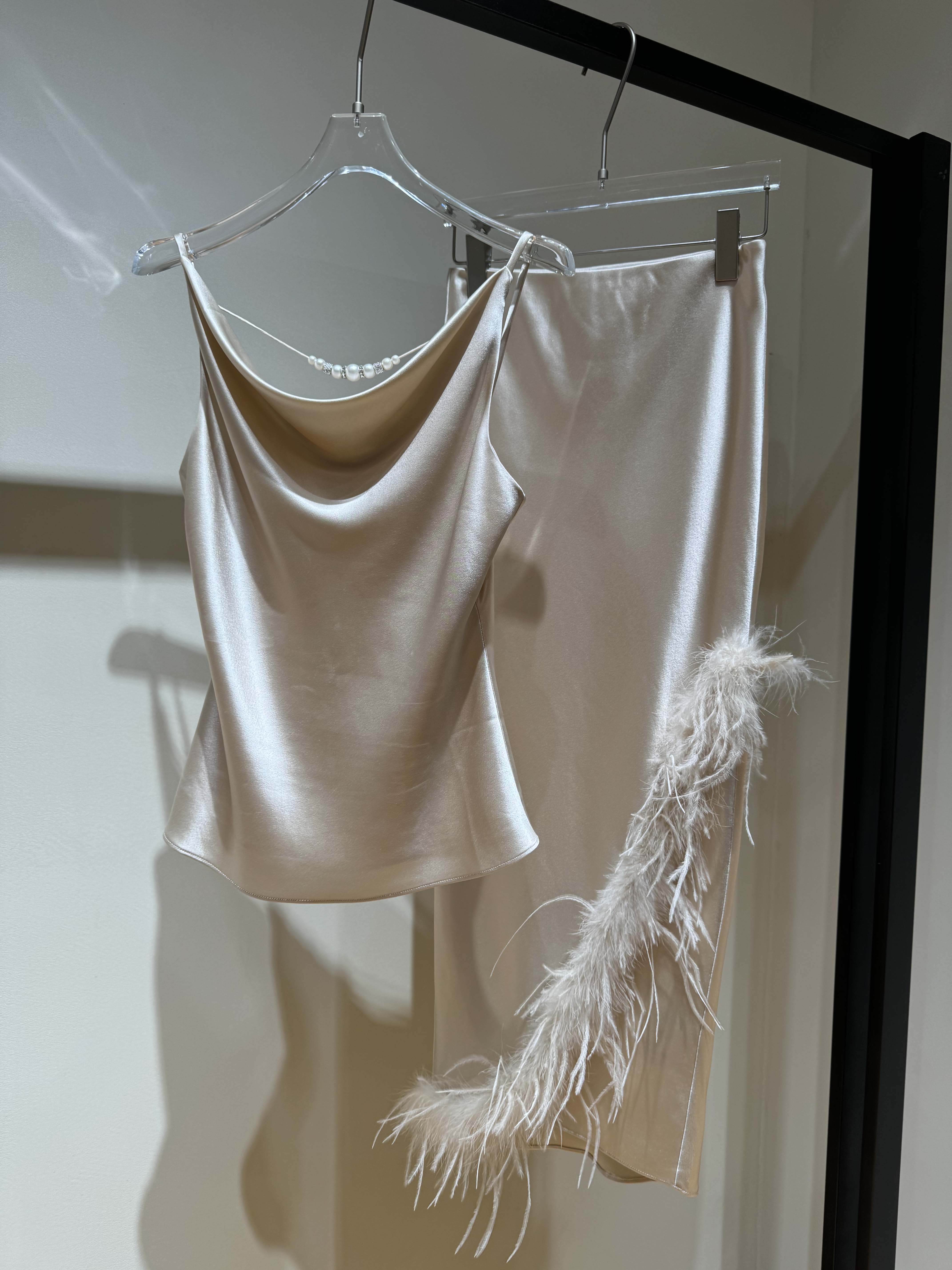高端重磅醋酸面料 缎面质感细腻,丝滑垂坠有机理,香槟色非常高级,DA牌爱!