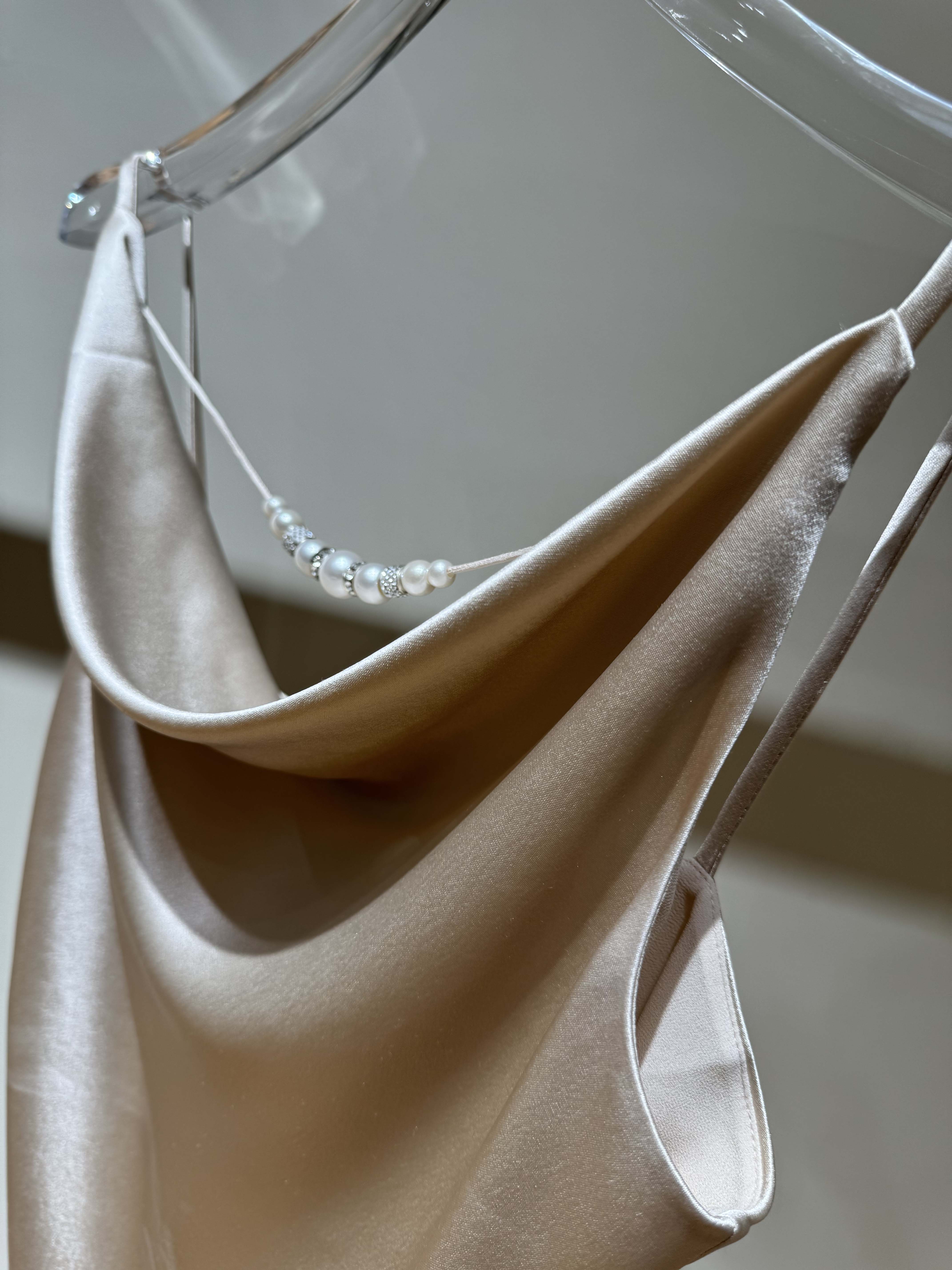 气质荡领珍珠链条吊带