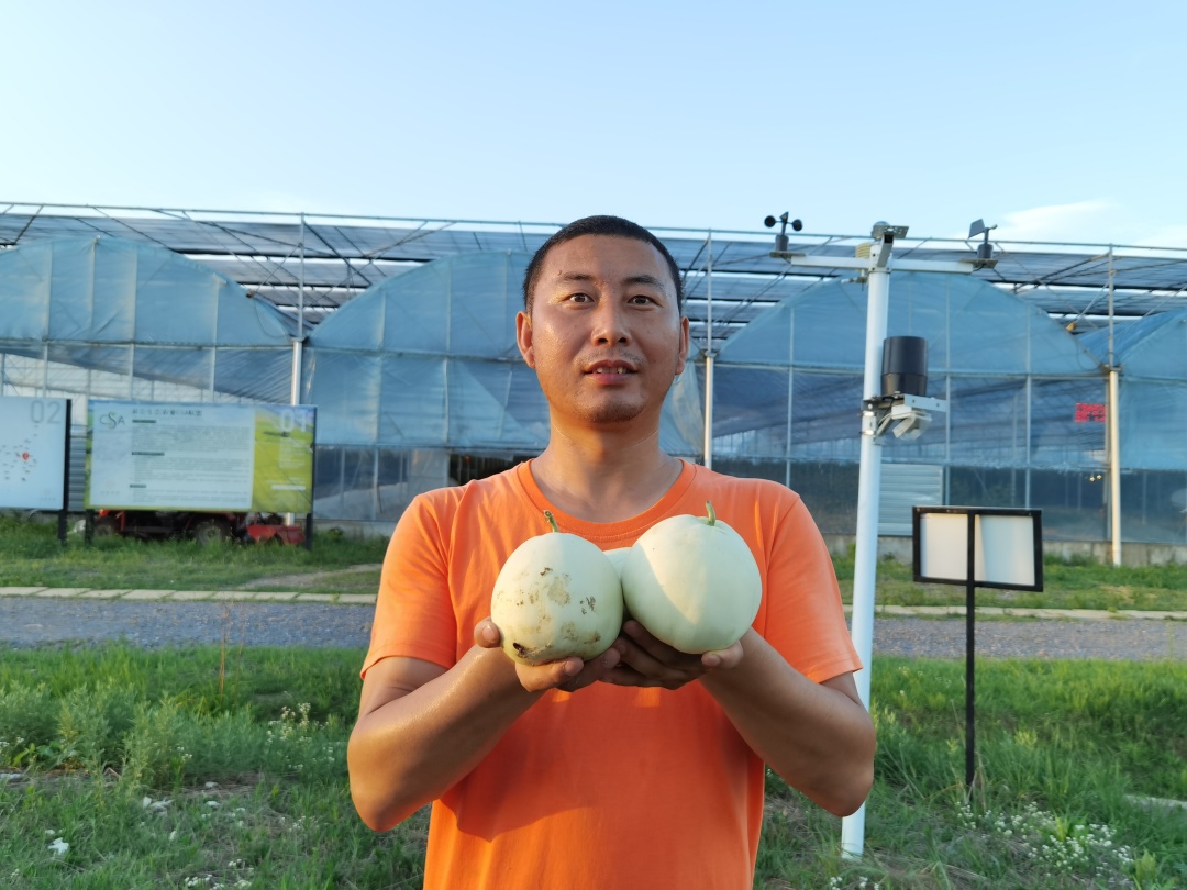 贝贝南瓜是网红蔬菜,粉、面、甜,但是一直没有能达到有机标准的,所以今年夏天就让王晓明专门种了一点。第一年种植,量很少,种了600株,只成活了四百多株。