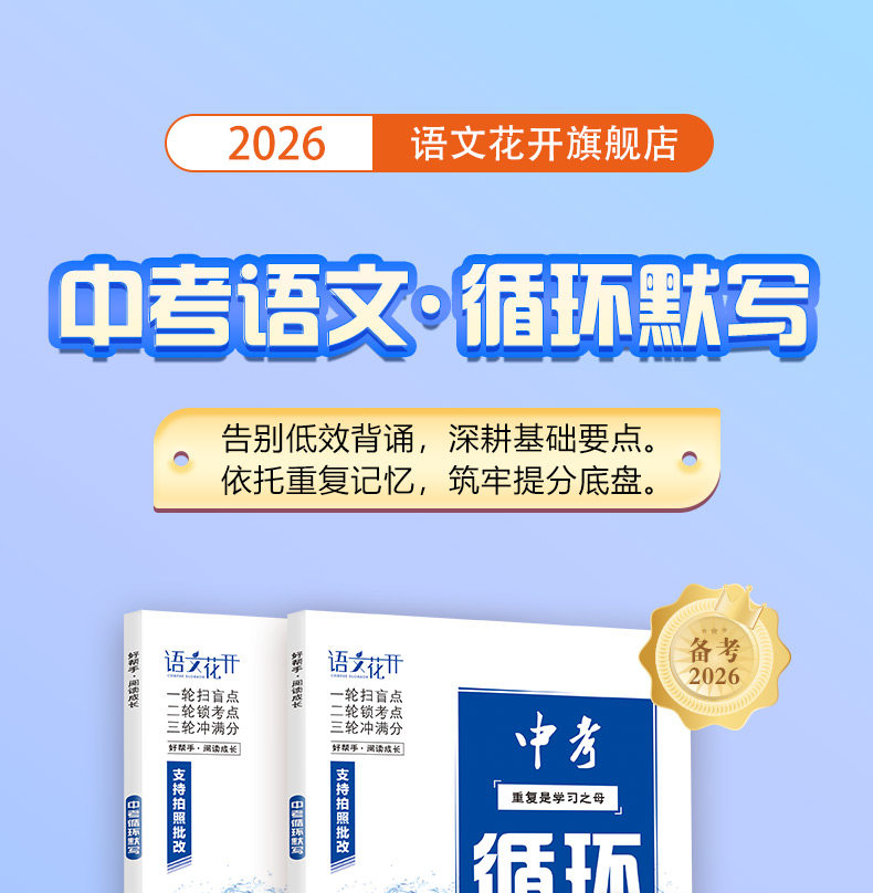 2026年语文花开中考循环默写语文基础初中通用硬核扫描批改语文精选基础零丢分备战中考考场满分作文素材技巧