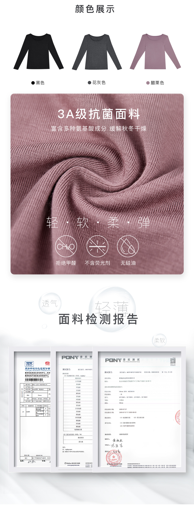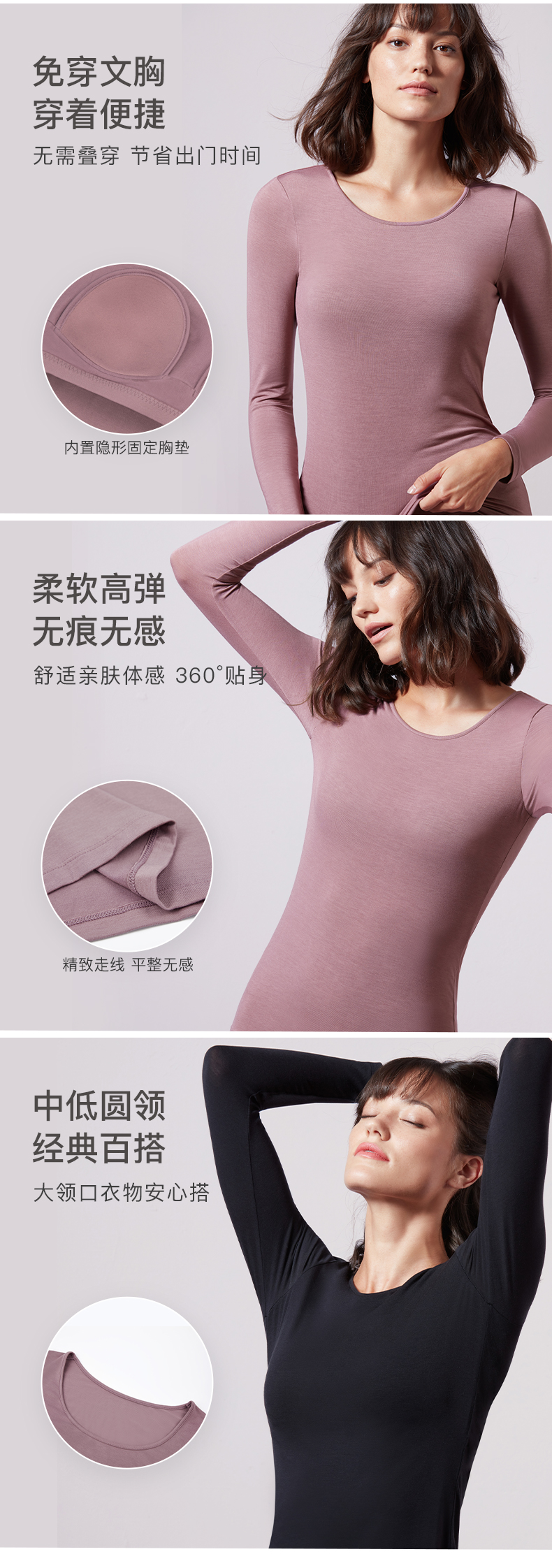Ubras氨基酸轻柔bra-in肌底衣舒适无痕长袖保暖衣修身