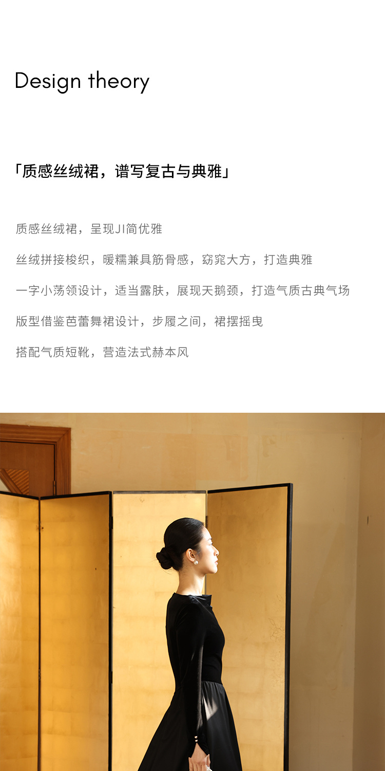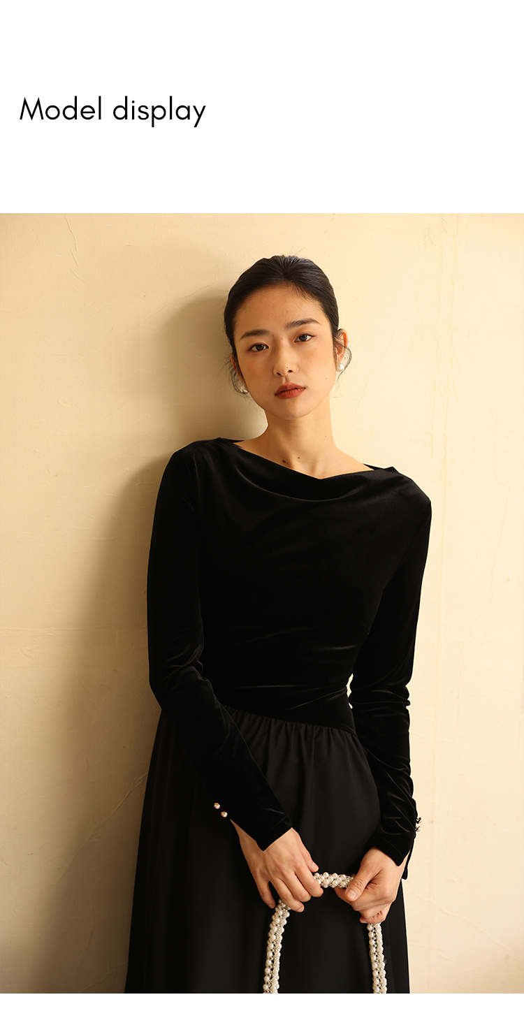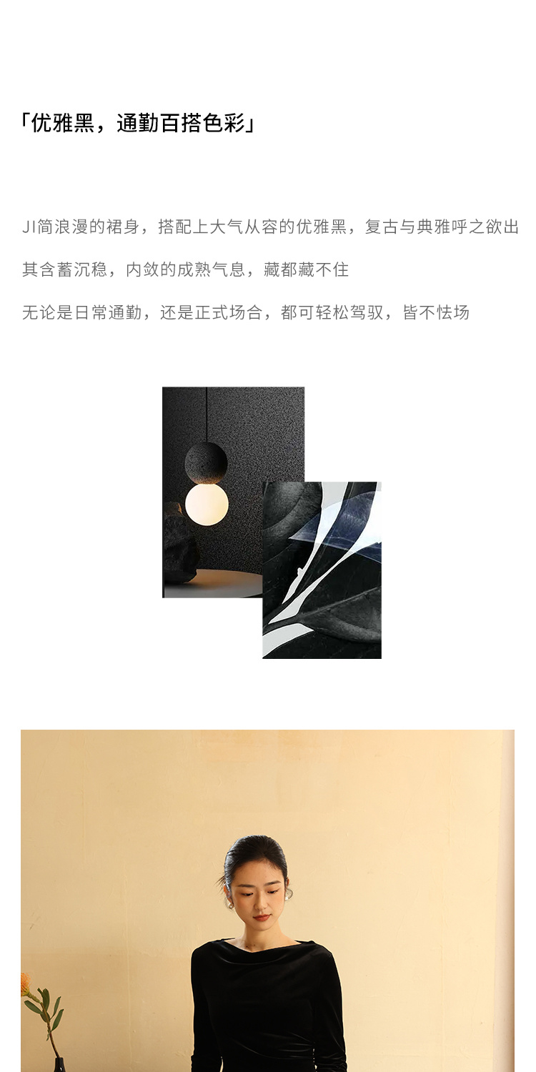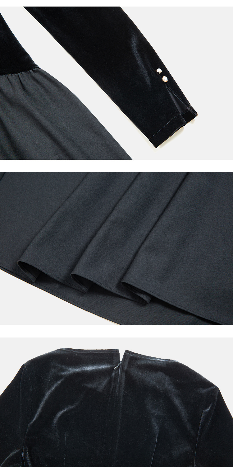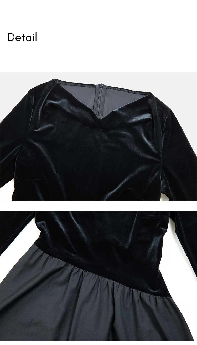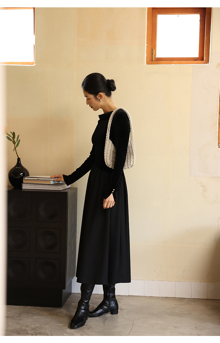 HeyDress法式拼接丝绒连衣裙女秋冬复古收腰气质小黑裙赫本风裙子