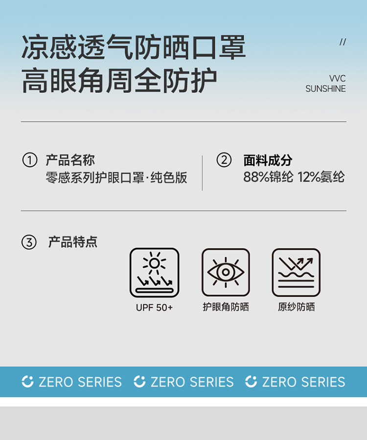 VVC零感系列护眼口罩·纯色版(两只装) 女开车防风全脸纯色立体显瘦护眼角透气防紫外线凉感VGK4S254