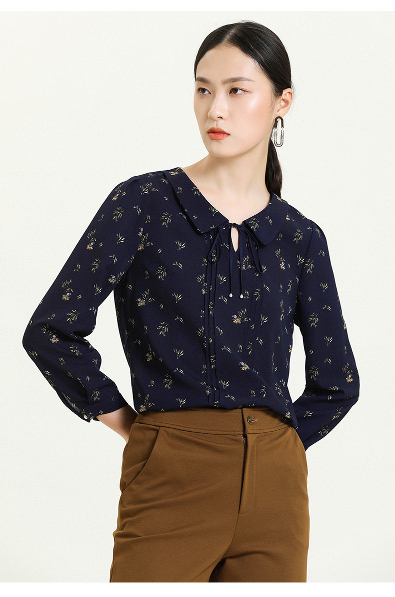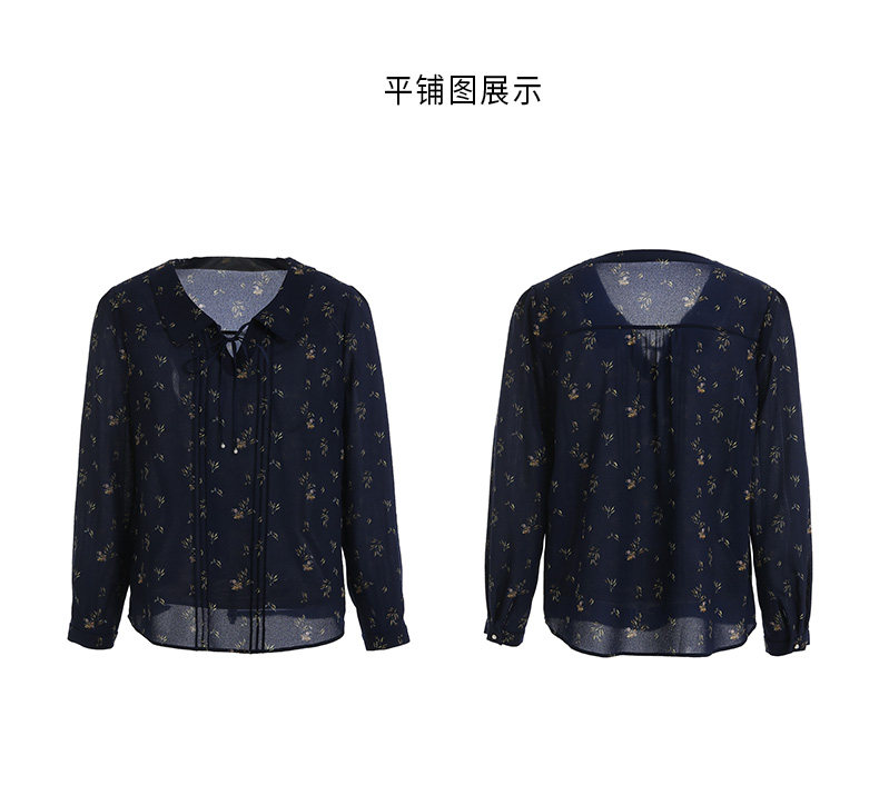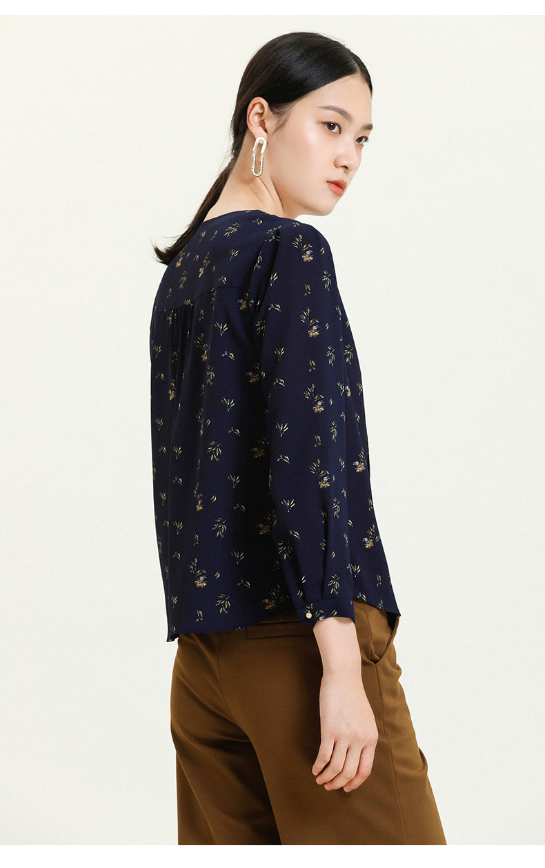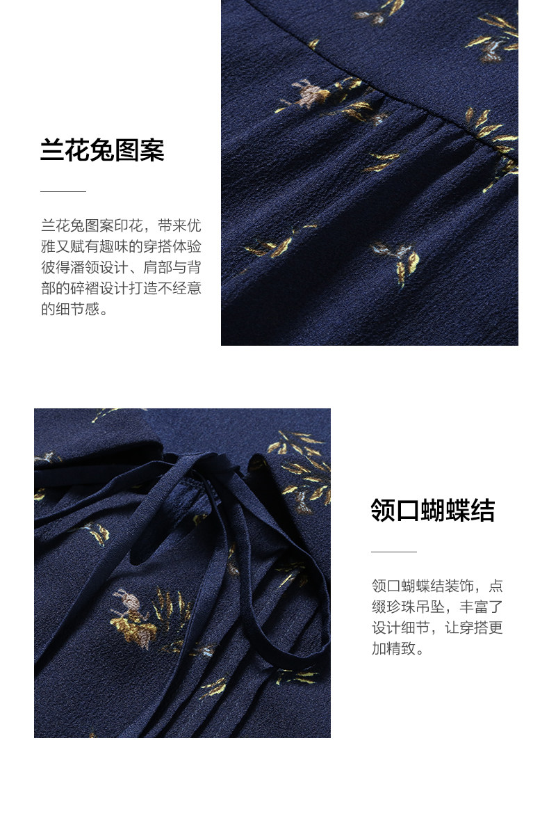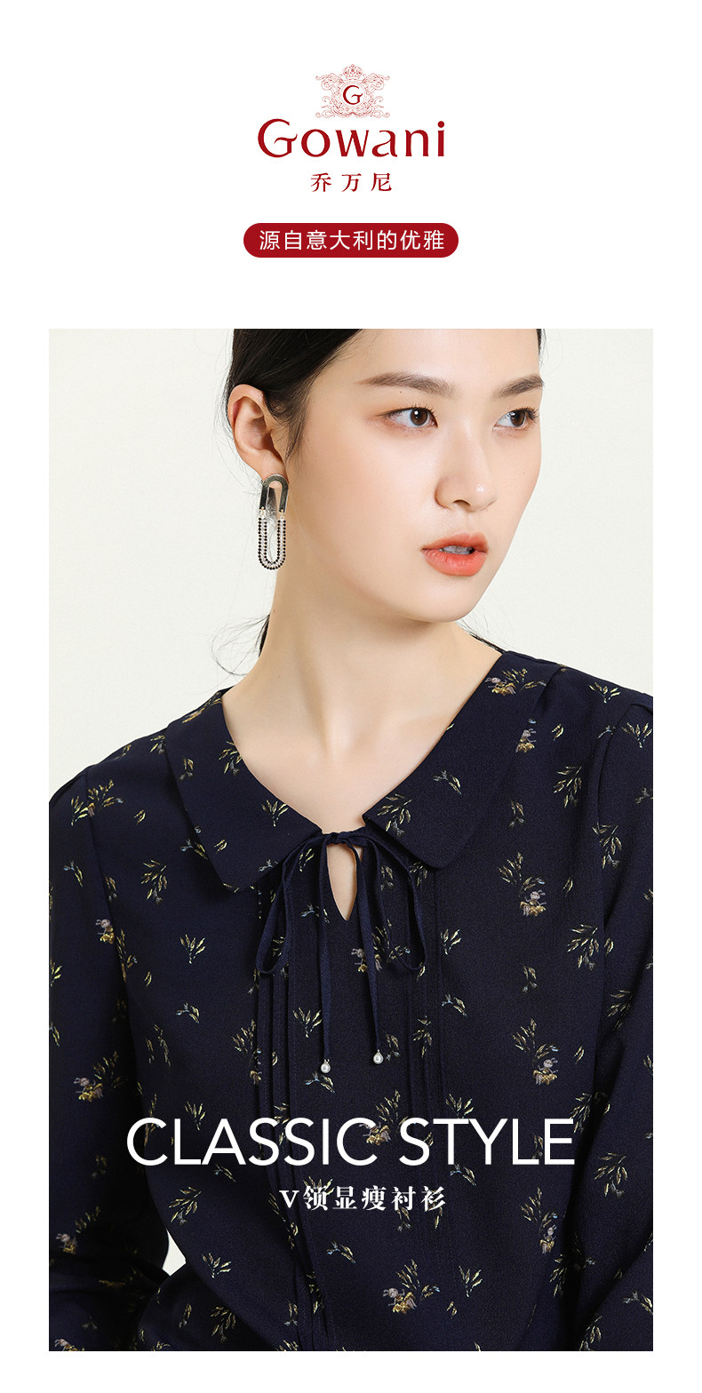 乔万尼新款V领显瘦蝴蝶结设计感薄款上衣清爽印花衬衫秋ES3C520