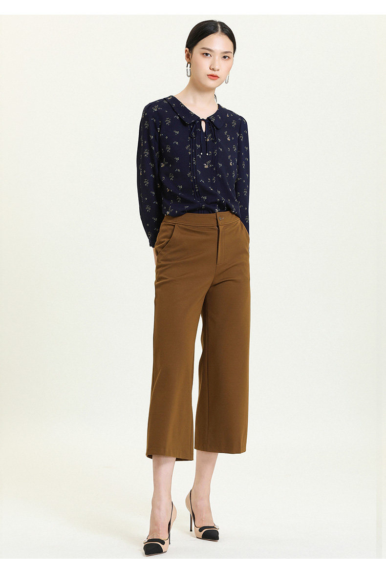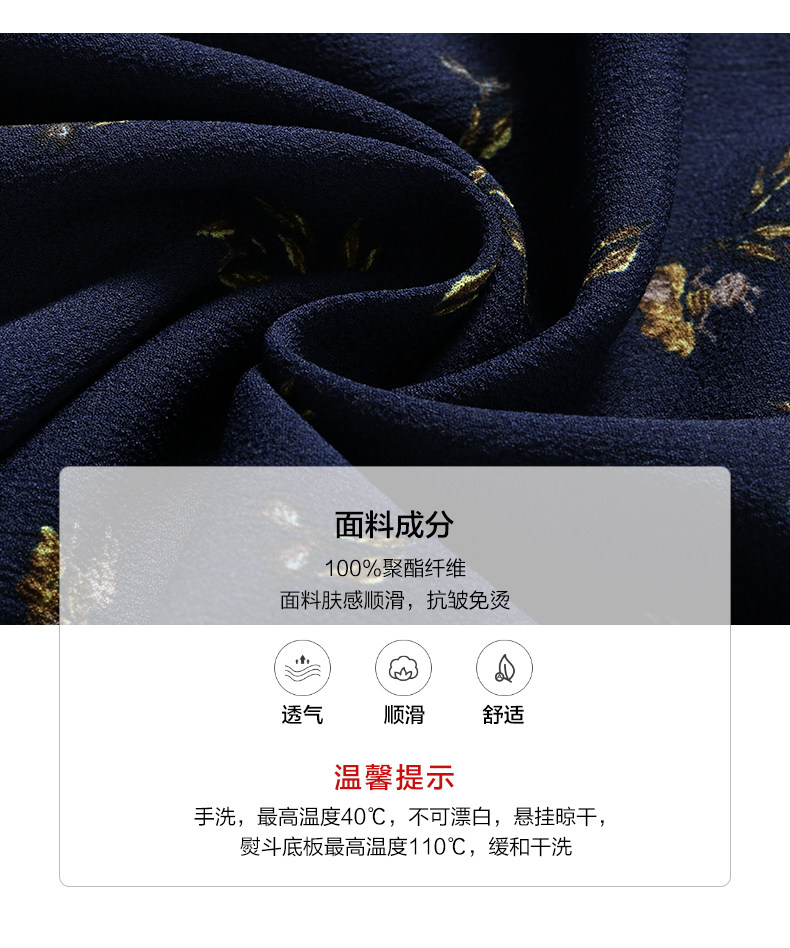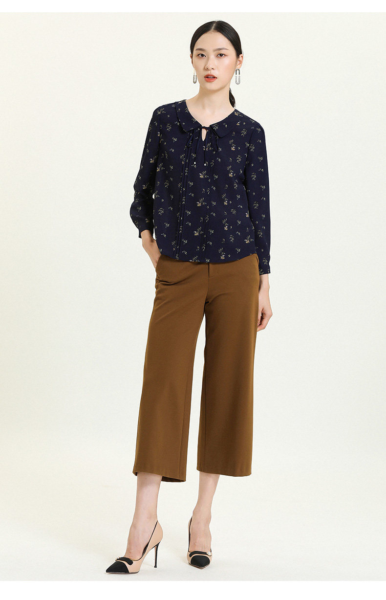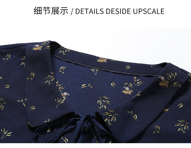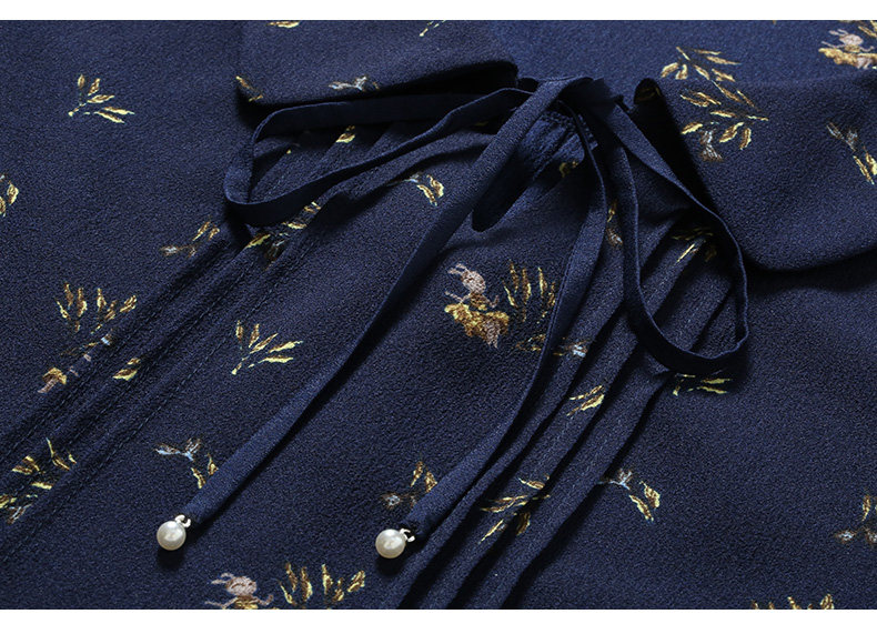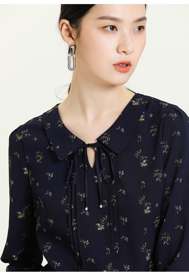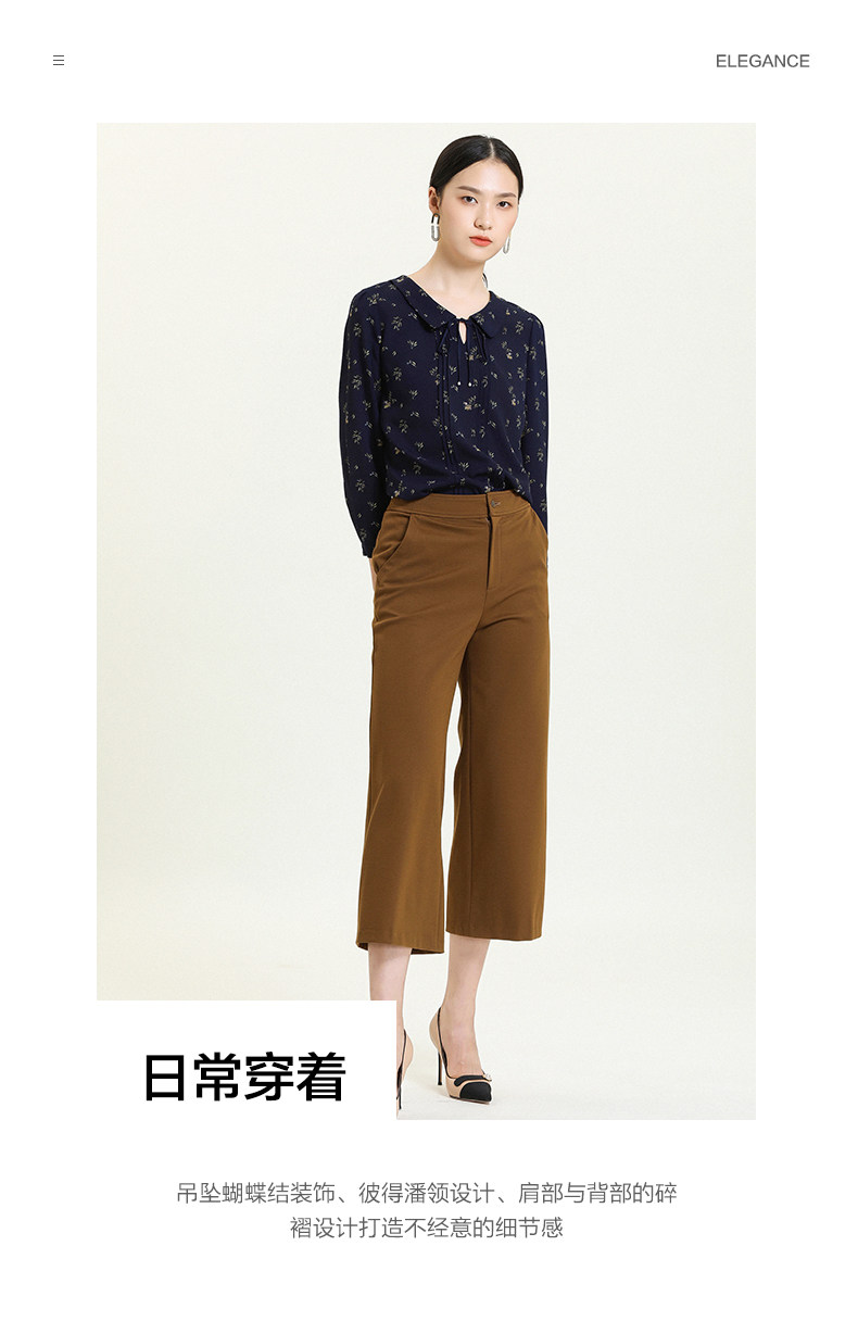 乔万尼新款V领显瘦蝴蝶结设计感薄款上衣清爽印花衬衫秋ES3C520