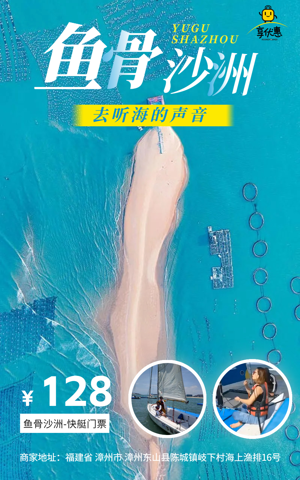 【限时抢购】128元抢购漳州东山岛鱼骨沙洲-往返快艇船票+门票+保险),福建版马尔代夫!享受冲浪带来的快感吧!