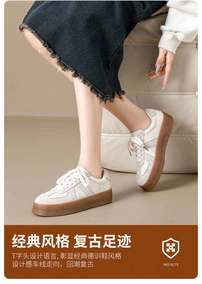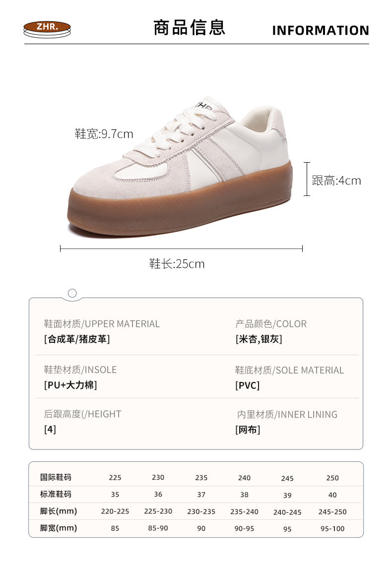 ZHR则则厚底轻便德训鞋2024春秋款ins百搭休闲鞋圆头软底耐磨女鞋