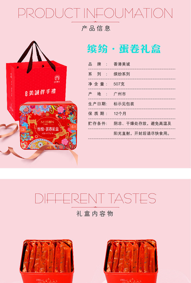 香港美诚糕点礼盒装 缤纷蛋卷休闲食品零食小吃点心组合507g年货礼品