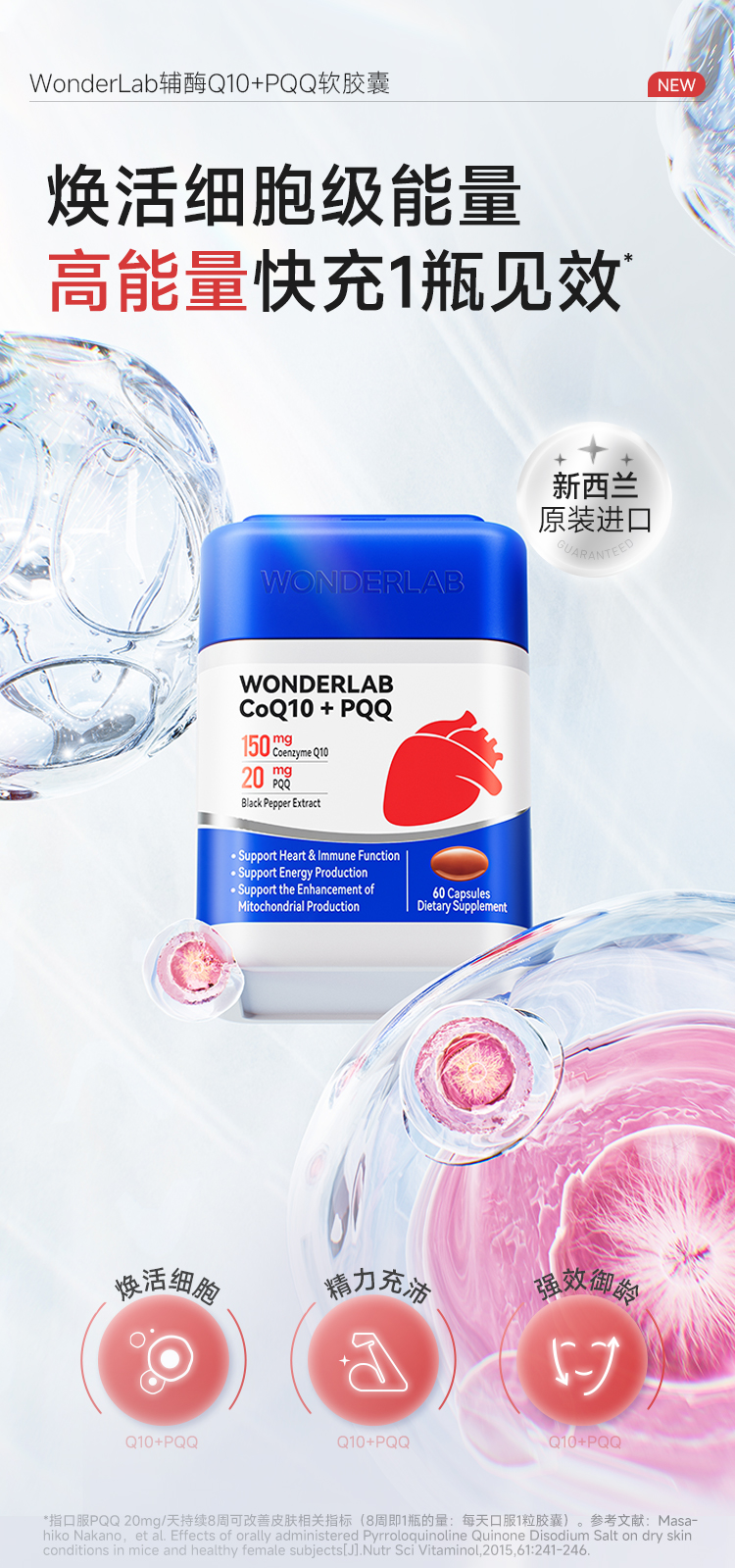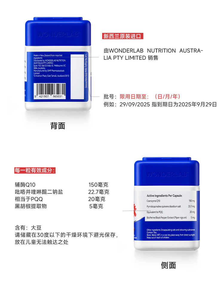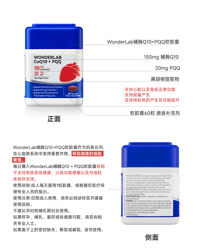 【宁波保税仓】万益蓝⑧ WonderLab 辅酶Q10+PQQ软胶囊 双效护心肌