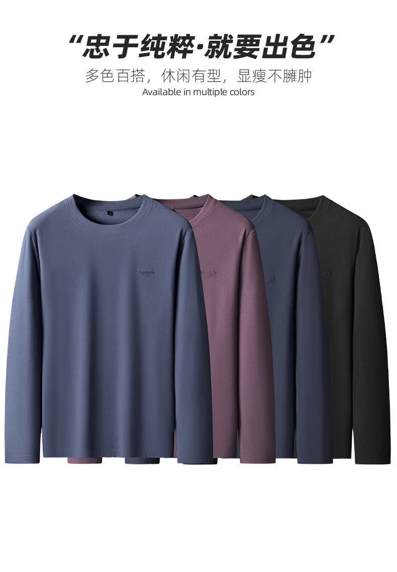 【新款DK】大依优型大码德绒圆领长袖T恤男士加肥加大休闲大码男装宽松长袖体恤上衣打底衫