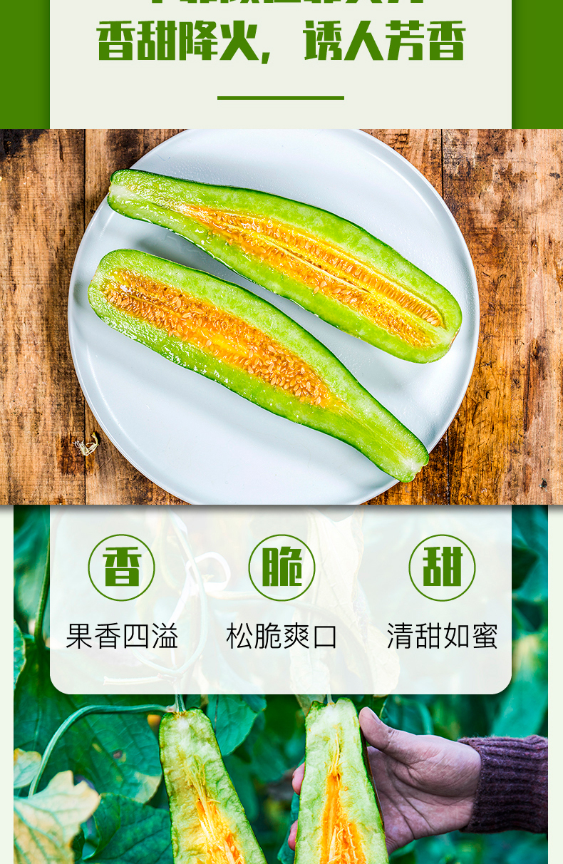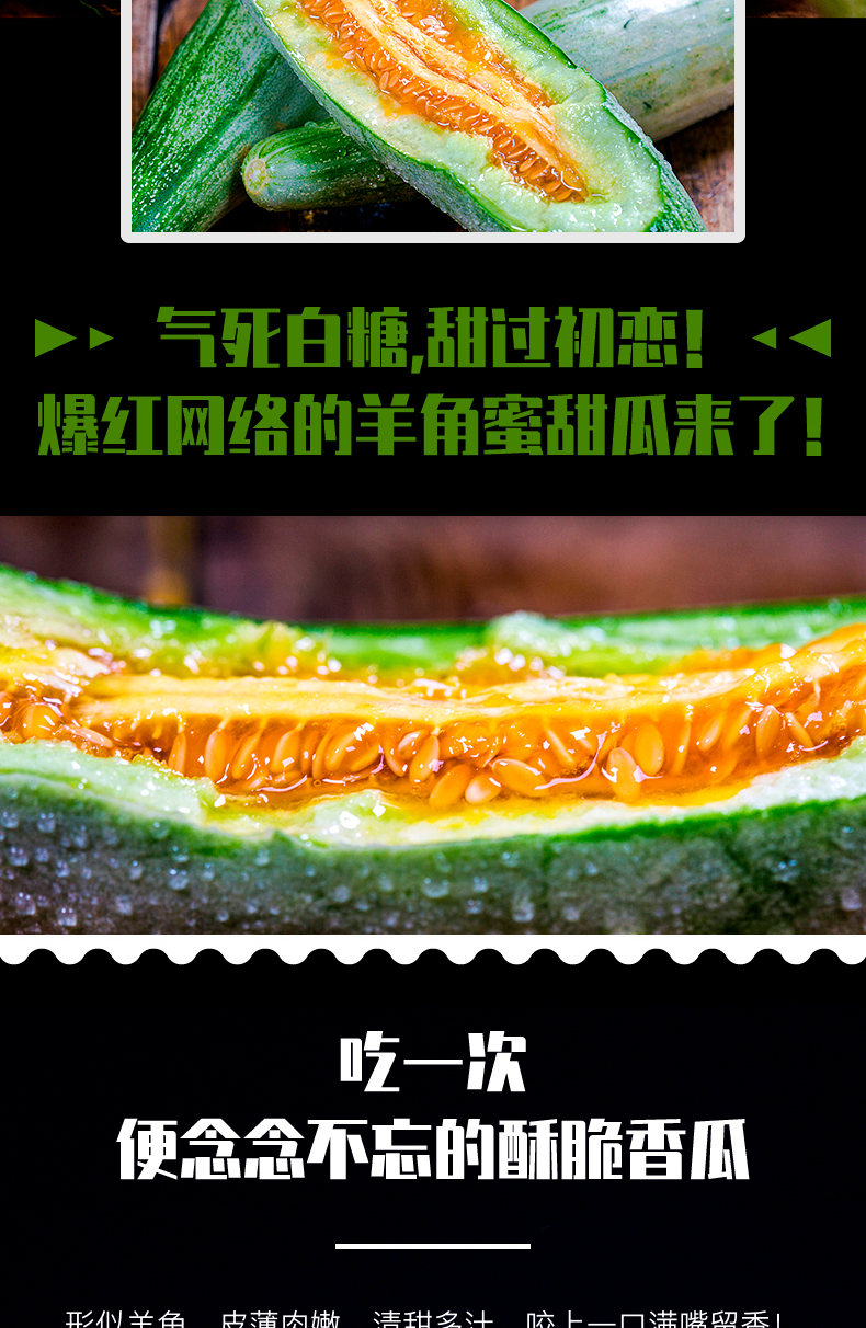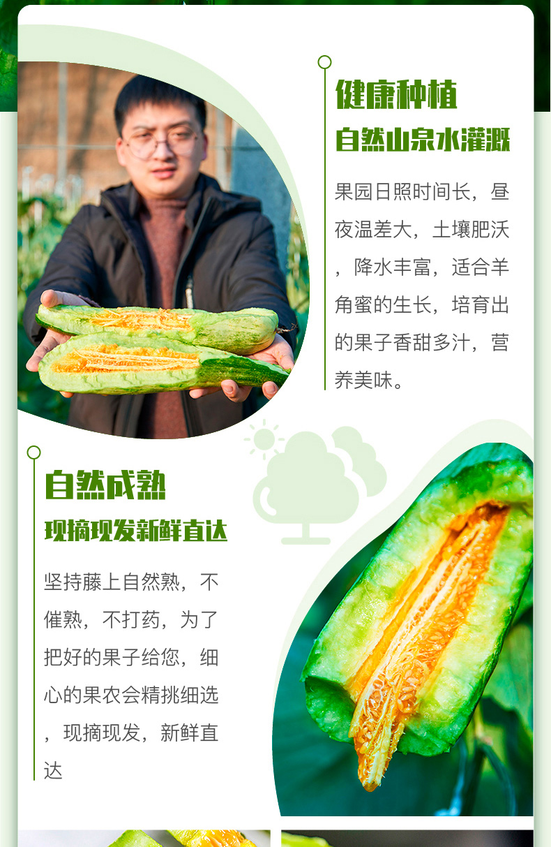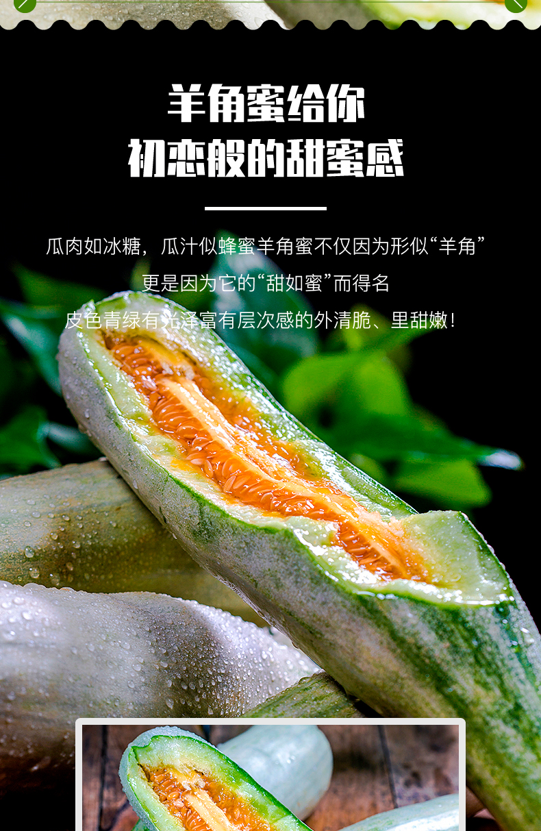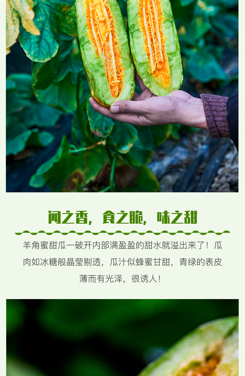 【羊角蜜瓜】前期口感清淡 后期甜度升高 介意慎拍~ 皮薄肉嫩 清甜多汁 果香四溢 松脆爽口 果皮薄脆 营养美味 4种规格任选