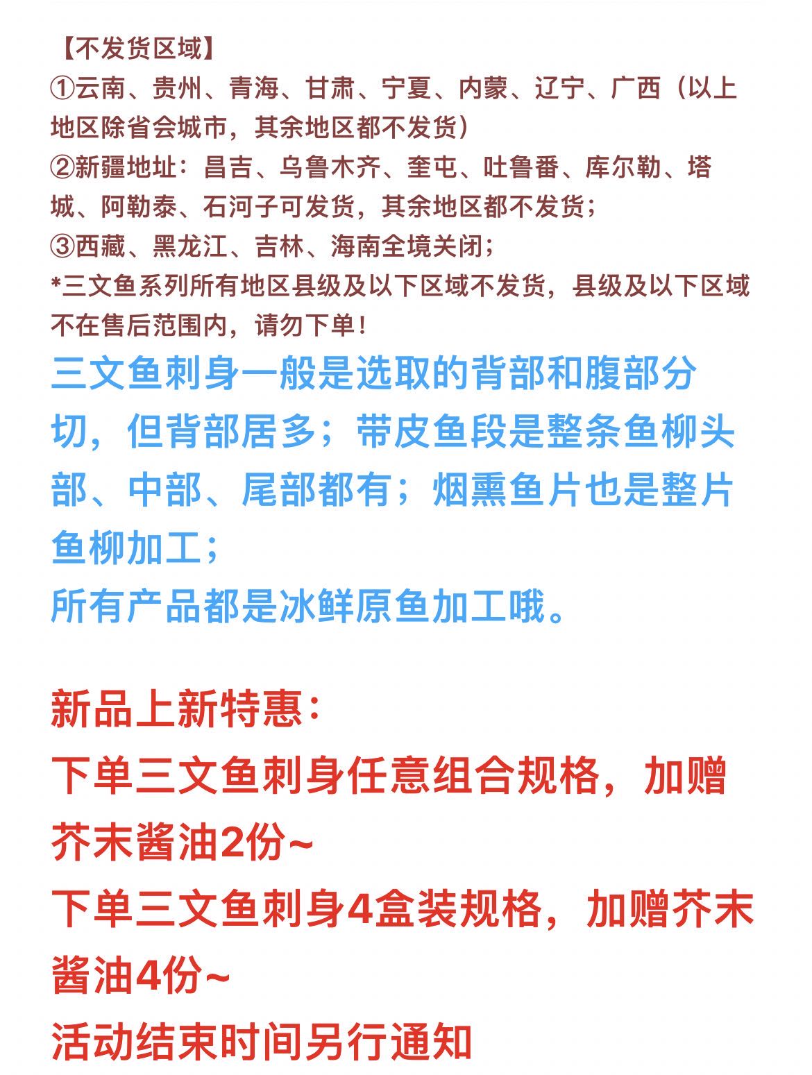 *三文鱼系列所有地区县级及以下区域不发货,县级及以下区域不在售后范围内,请勿下单!