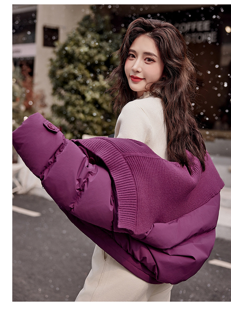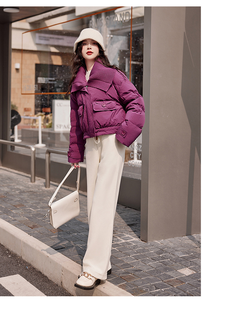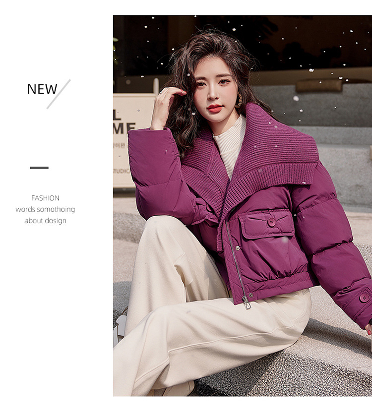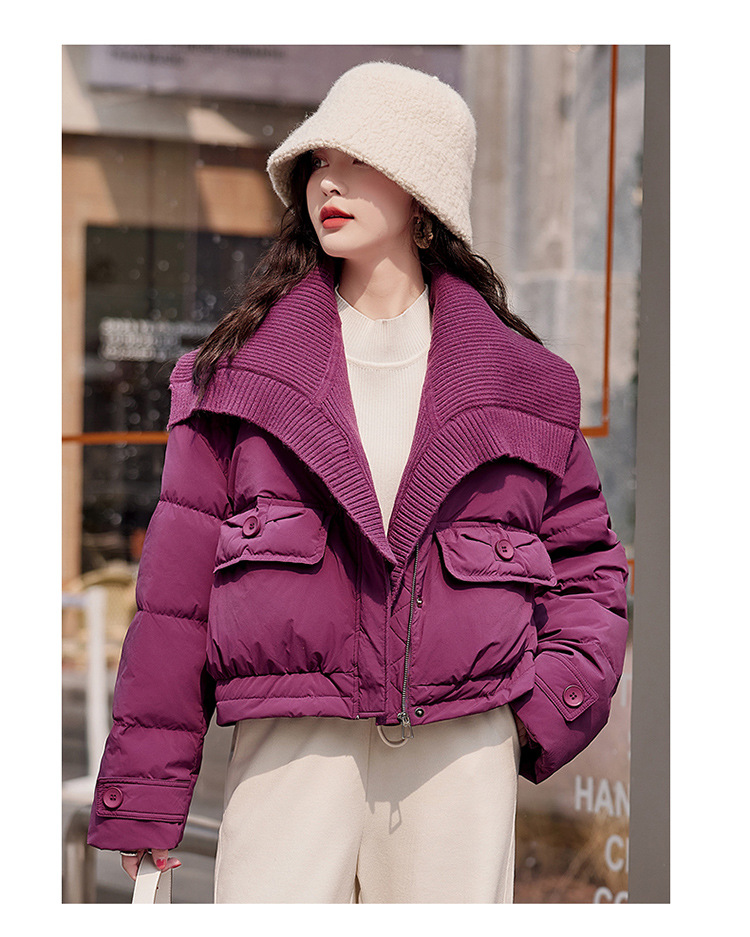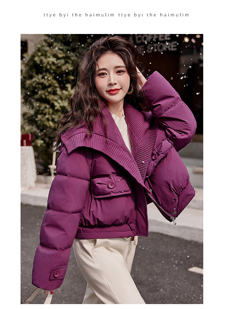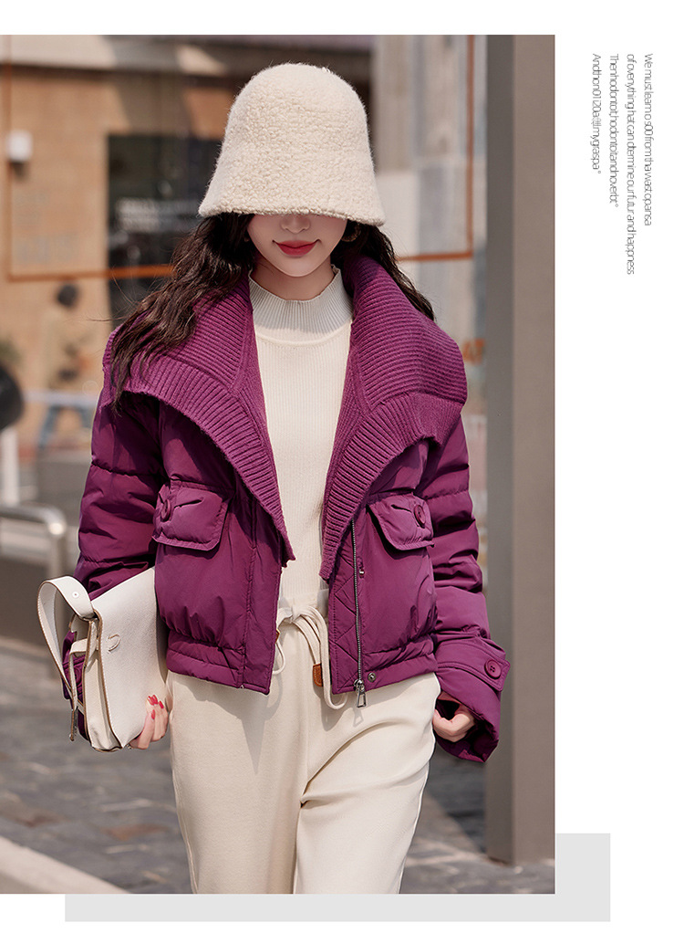 HR SNX2875韩版紫色大翻领外套针织翻领可脱卸羽绒服 商品图4
