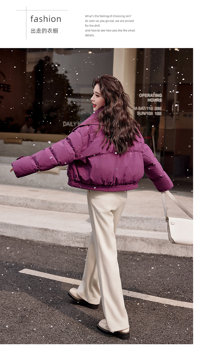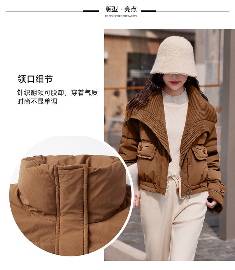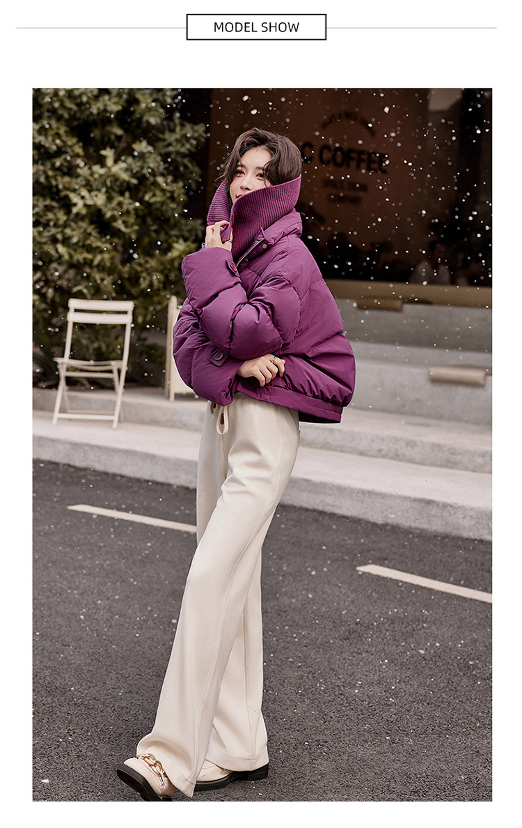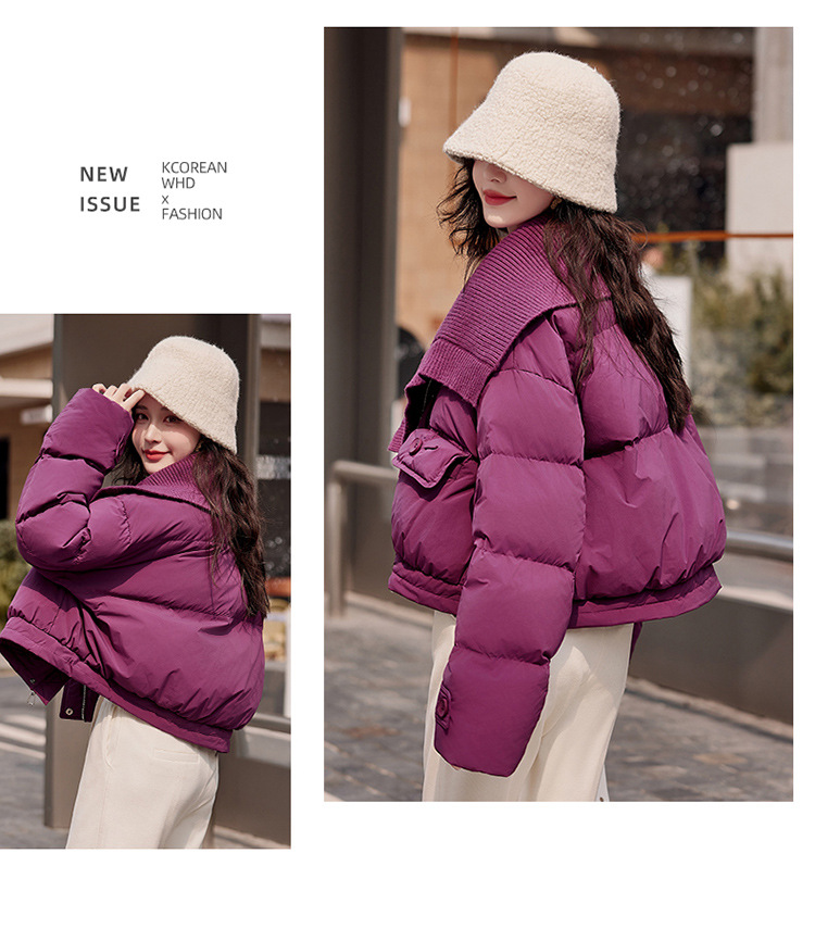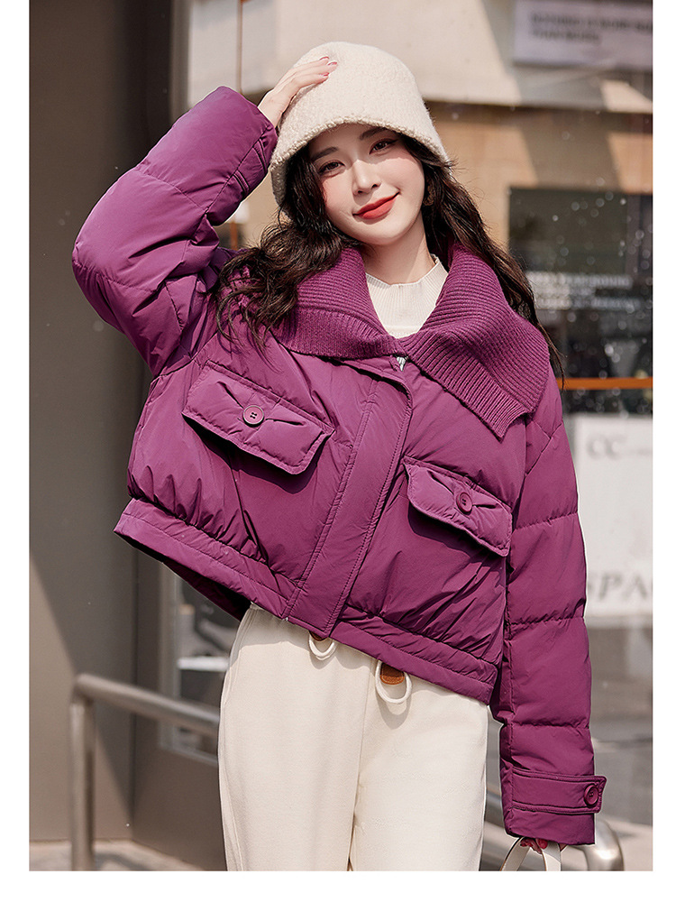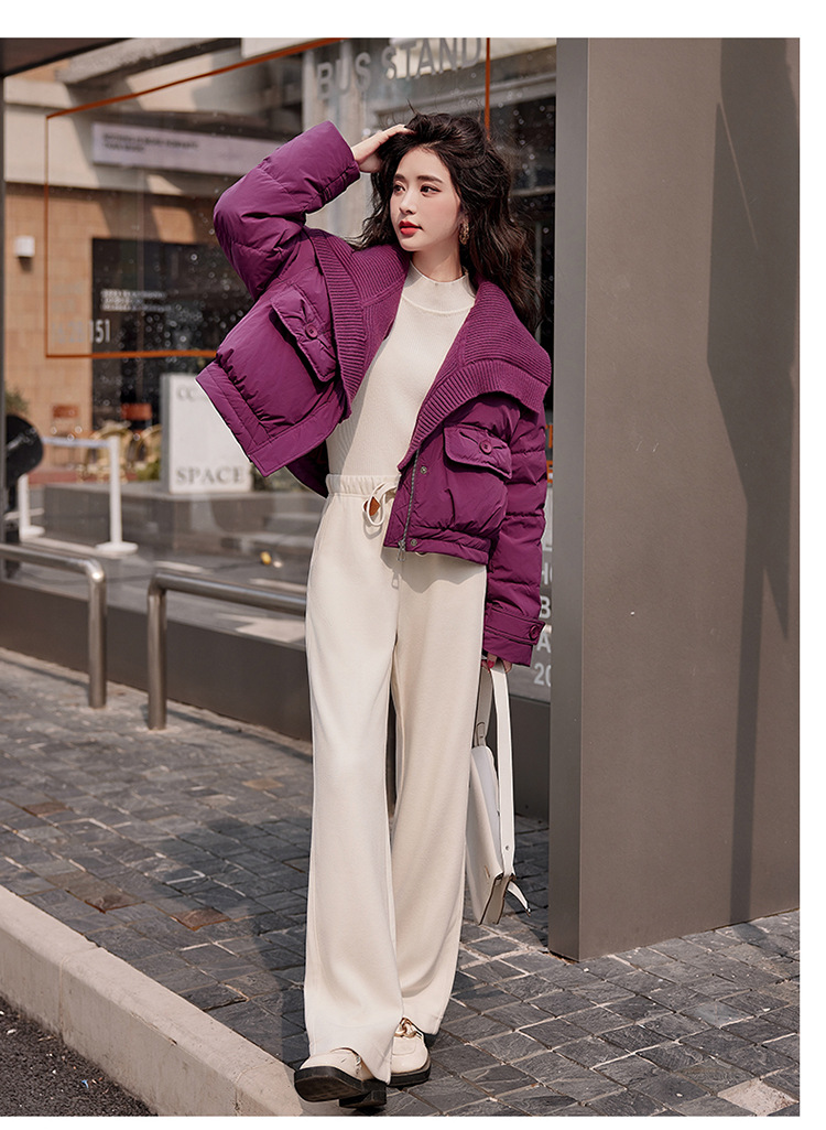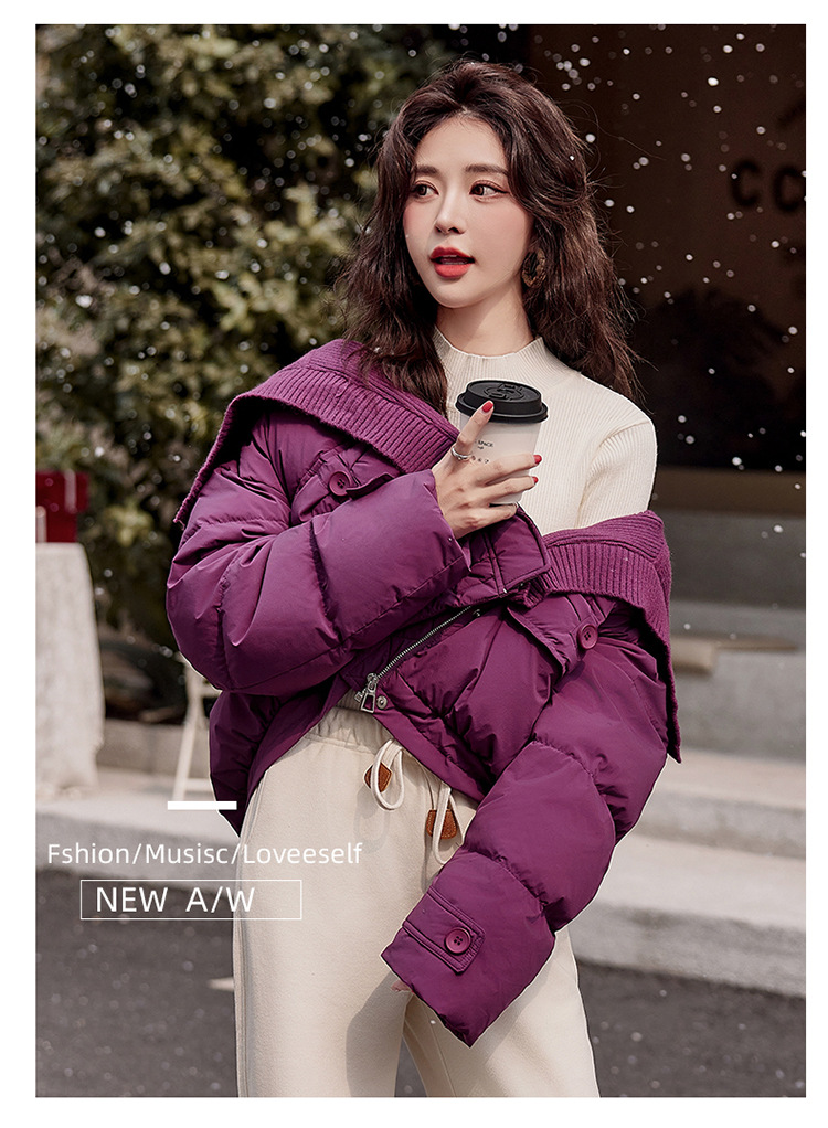 HR SNX2875韩版紫色大翻领外套针织翻领可脱卸羽绒服 商品图4