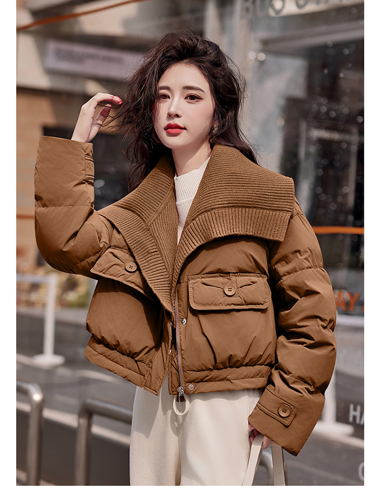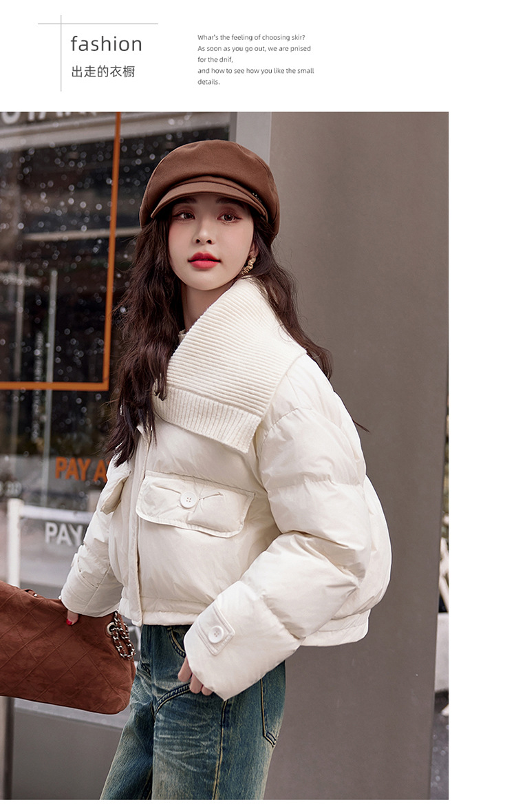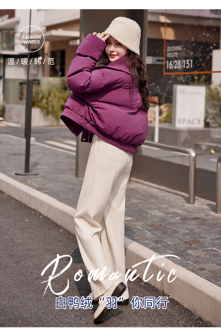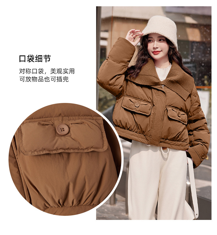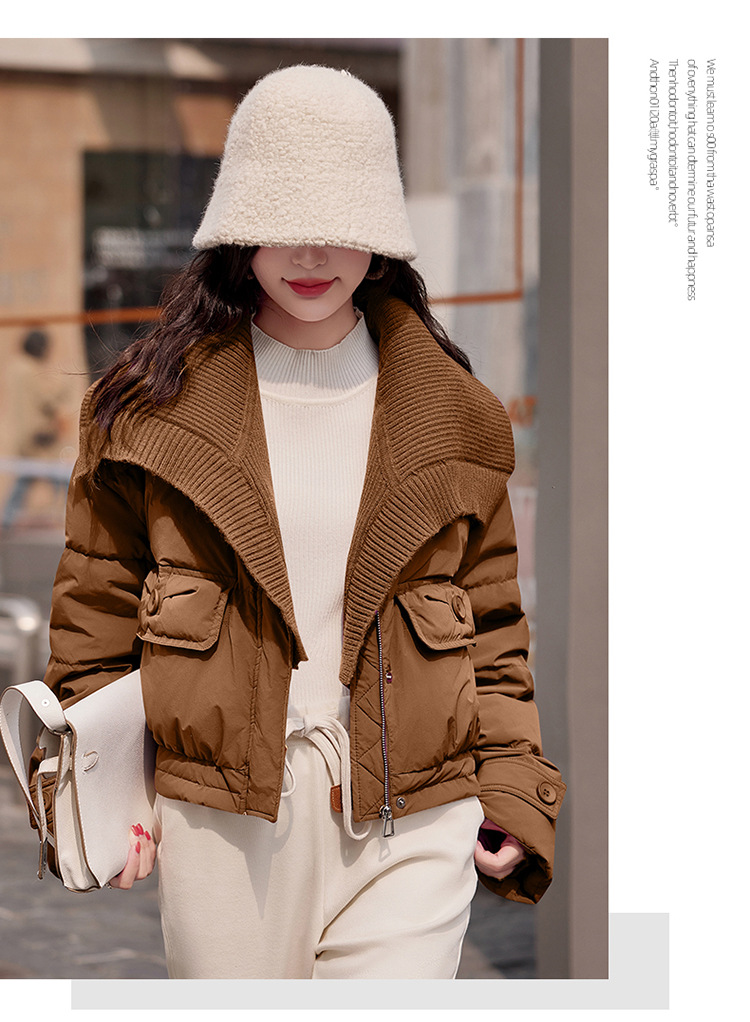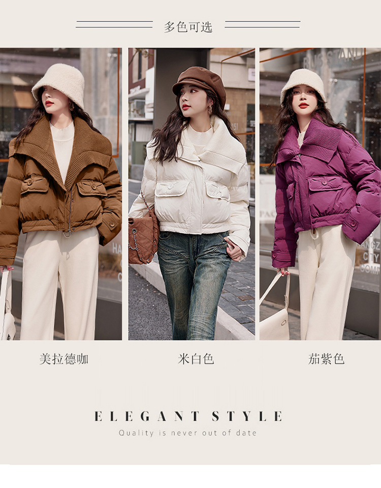 HR SNX2875韩版紫色大翻领外套针织翻领可脱卸羽绒服 商品图4