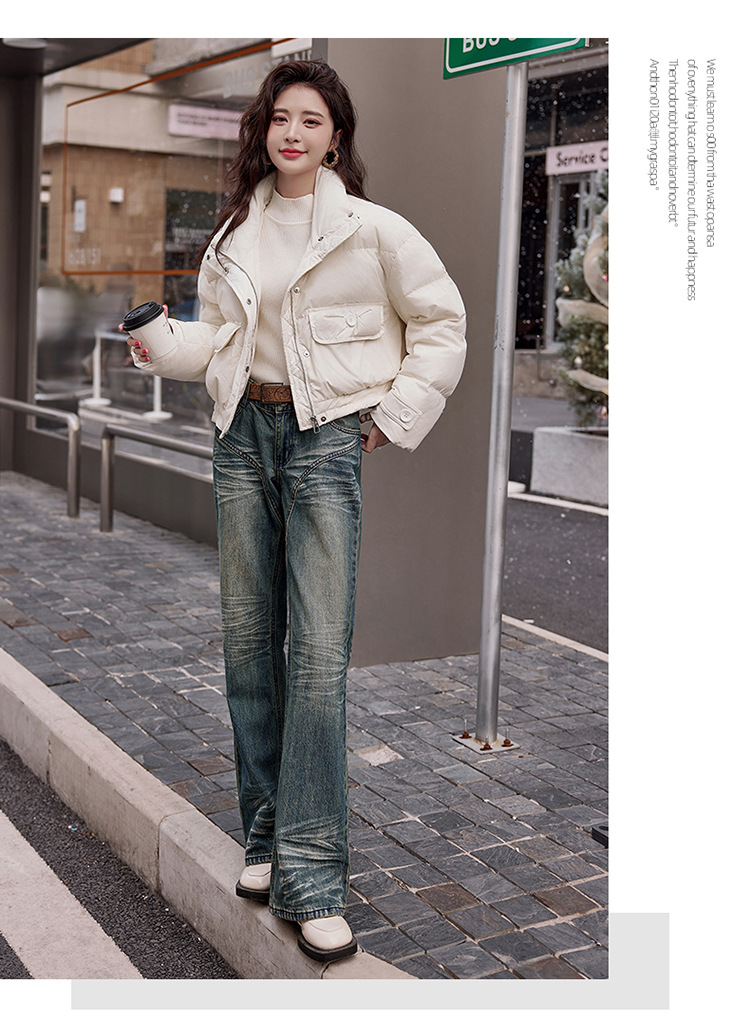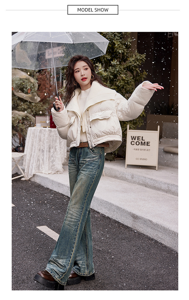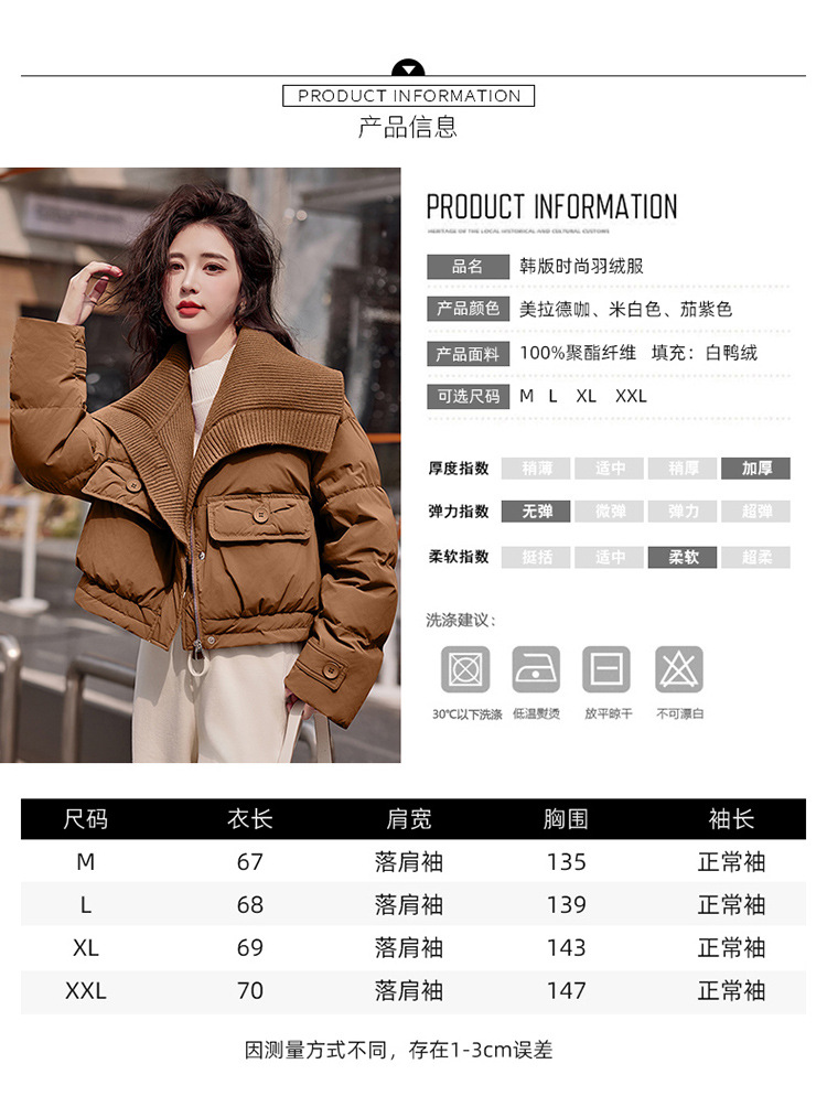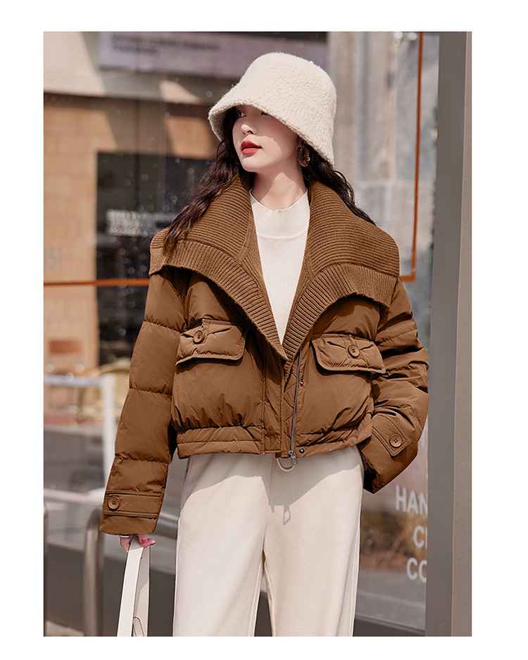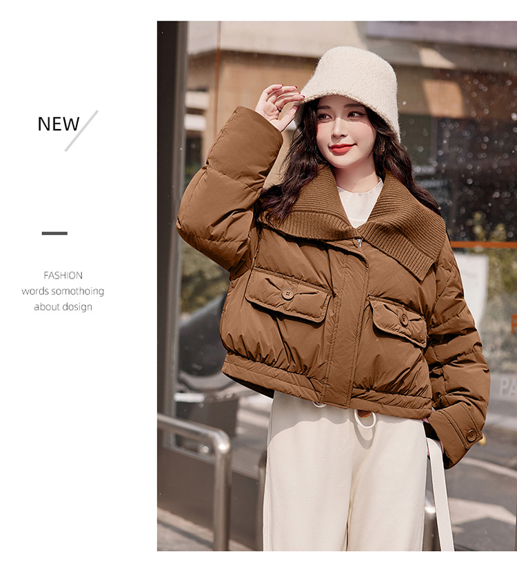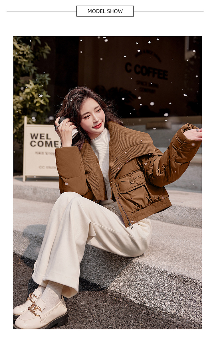 HR SNX2875韩版紫色大翻领外套针织翻领可脱卸羽绒服 商品图4