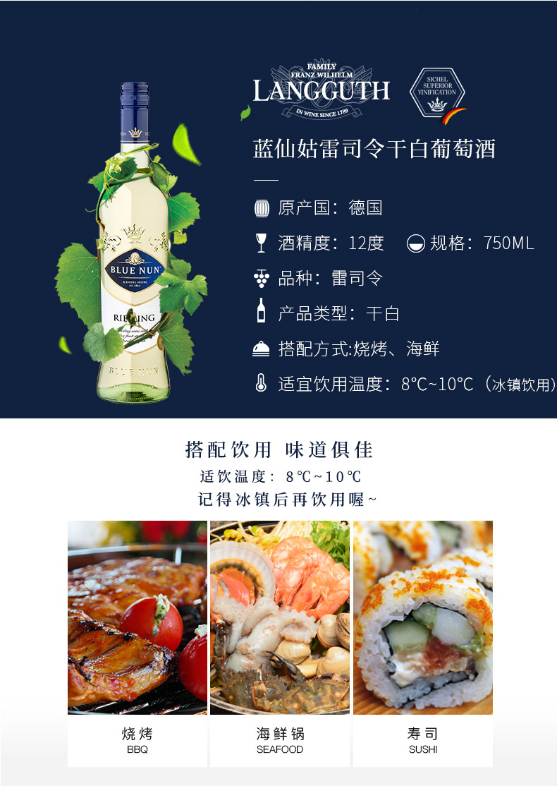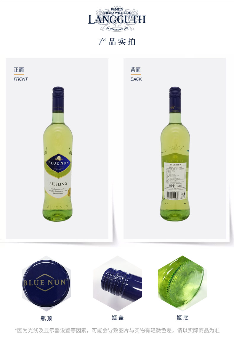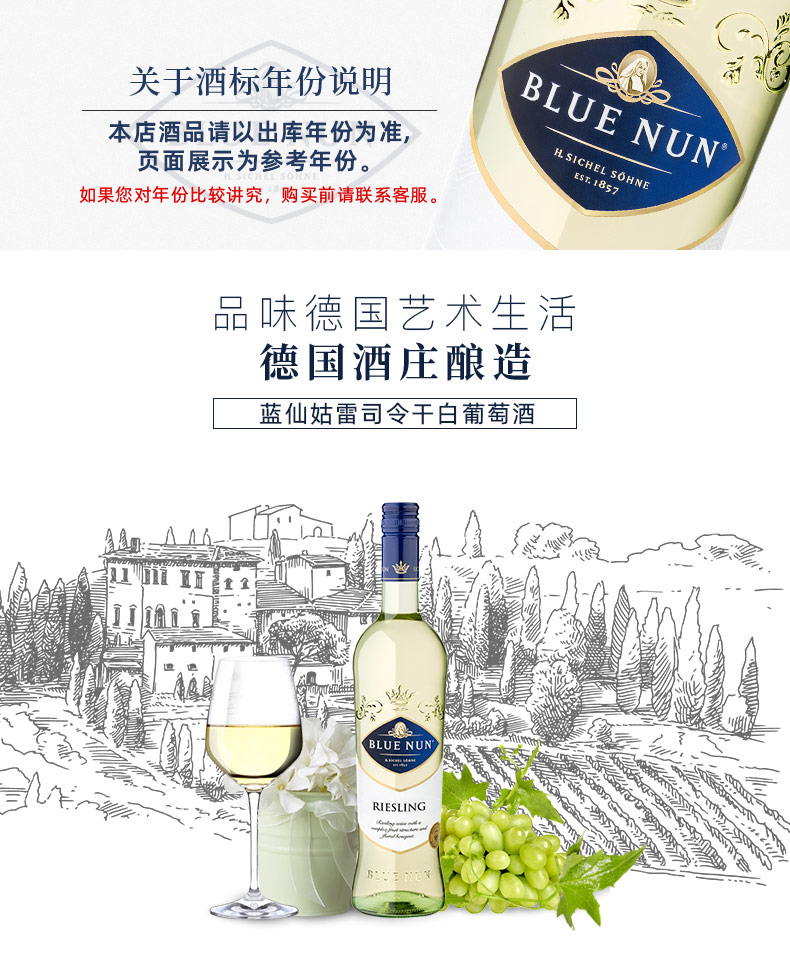 750ml全球版 蓝仙姑雷司令 干白葡萄酒12%vol 品味艺术生活