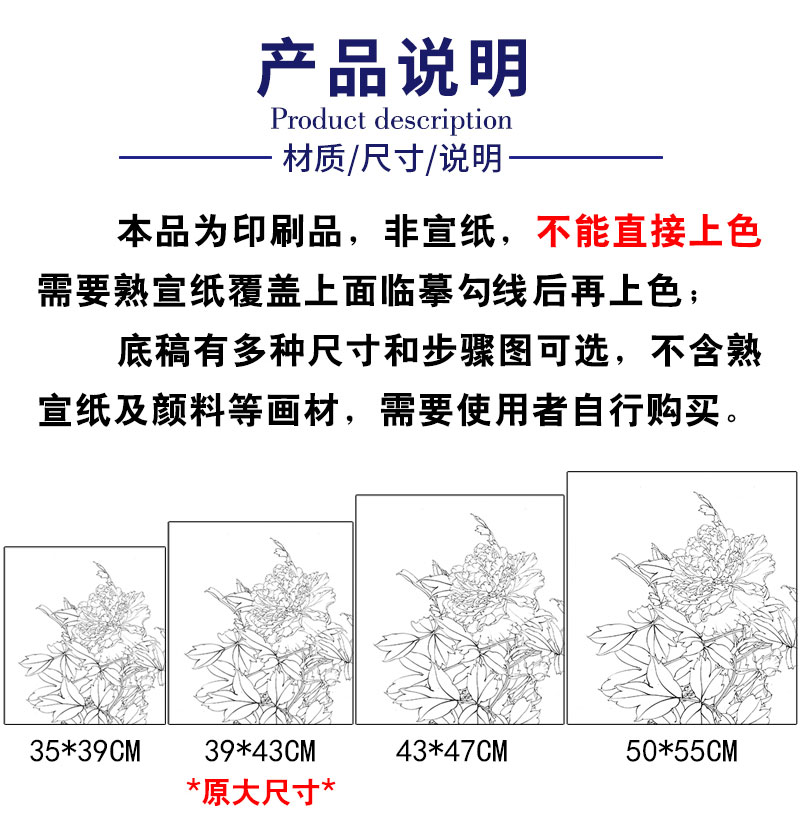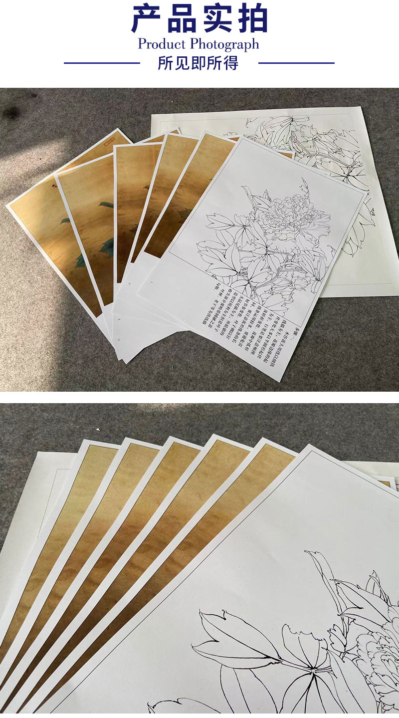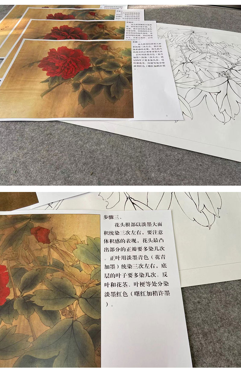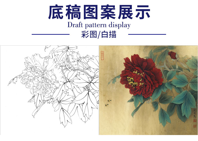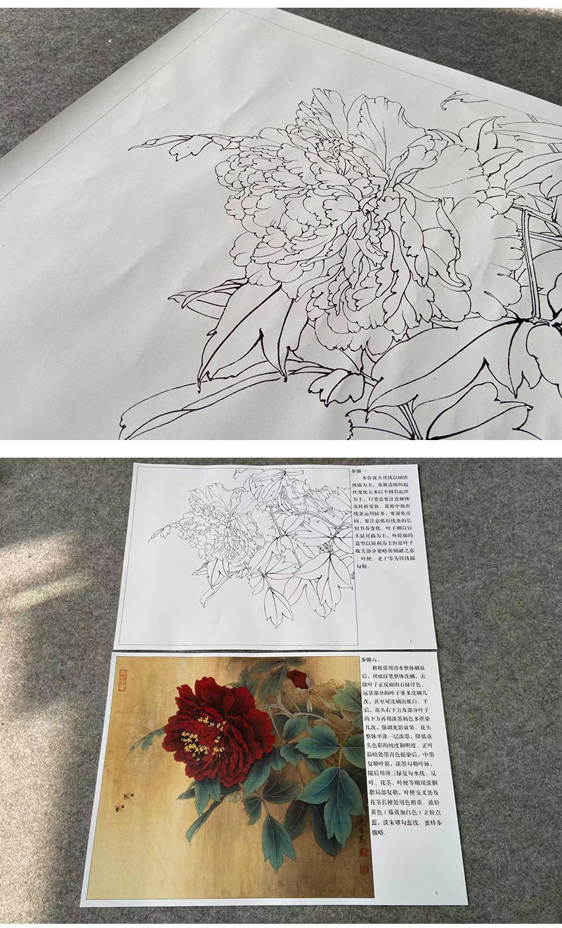 【有步骤、大彩图】李晓明工笔画白描底稿斗方小品《大宋紫》牡丹初学者临摹花鸟线稿KD11