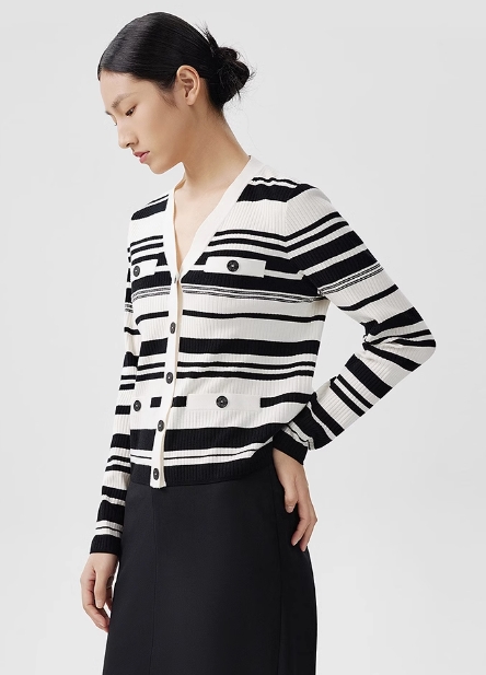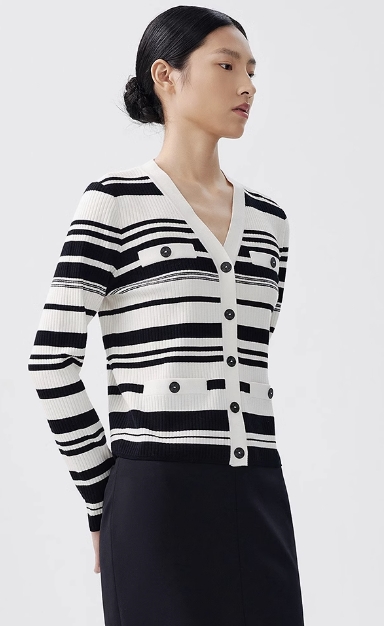 朗姿 羊毛针织衫黑白条纹LCEK05KCD451W11