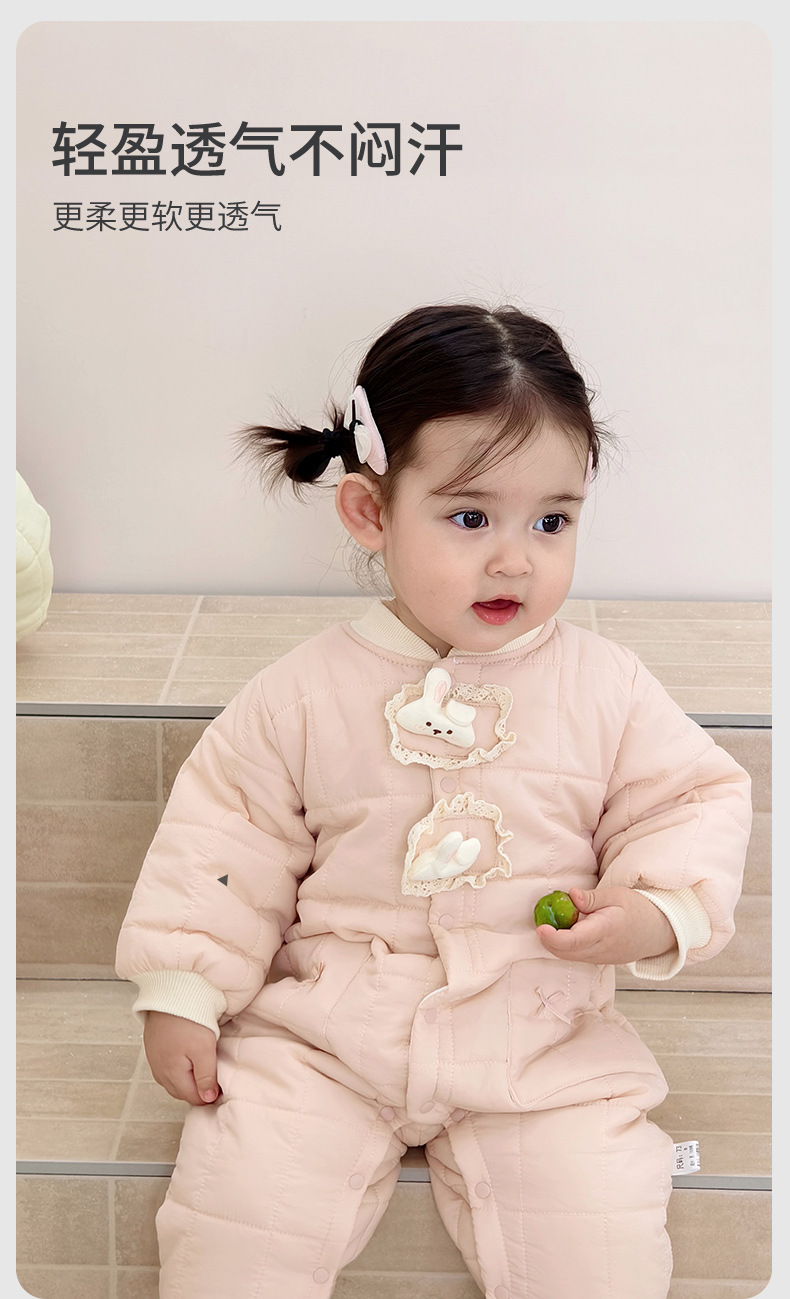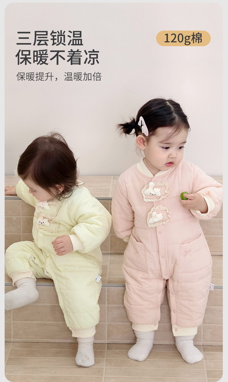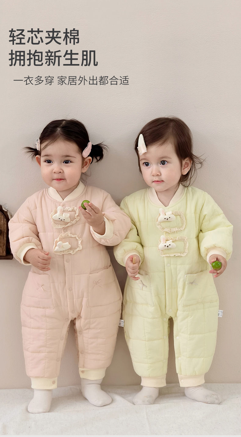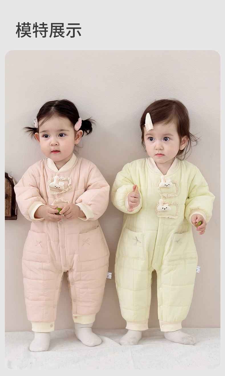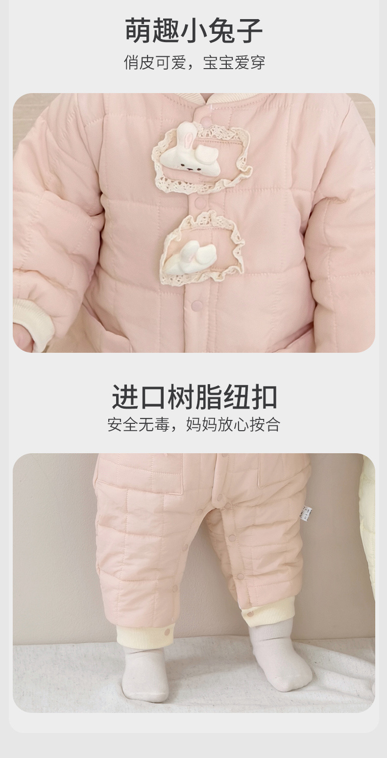 【超柔云朵棉!不闷透气会呼吸】婴儿衣服秋冬季新款女宝宝夹棉连体衣加厚满月新生儿外出抱衣爬服。hb