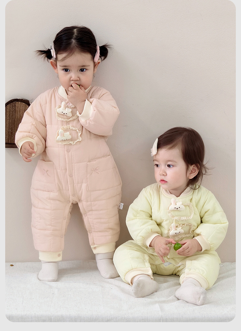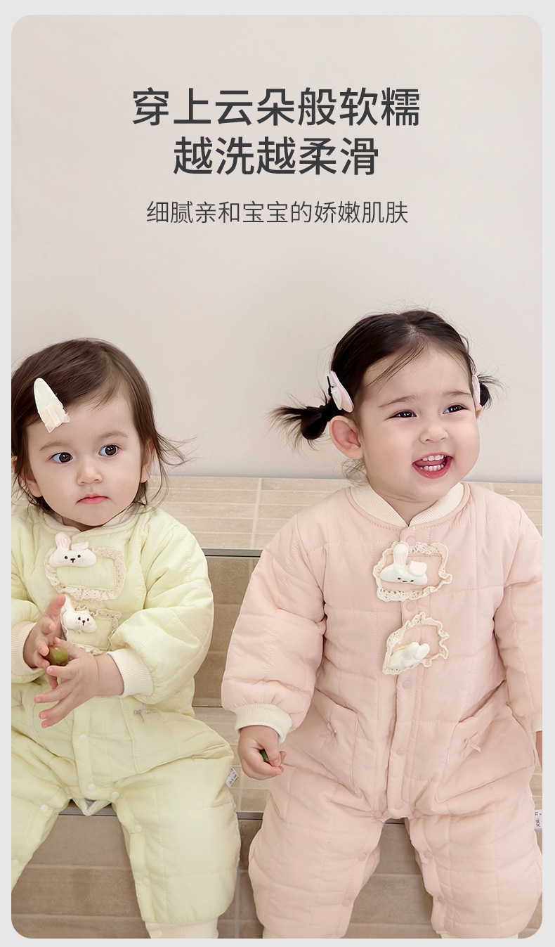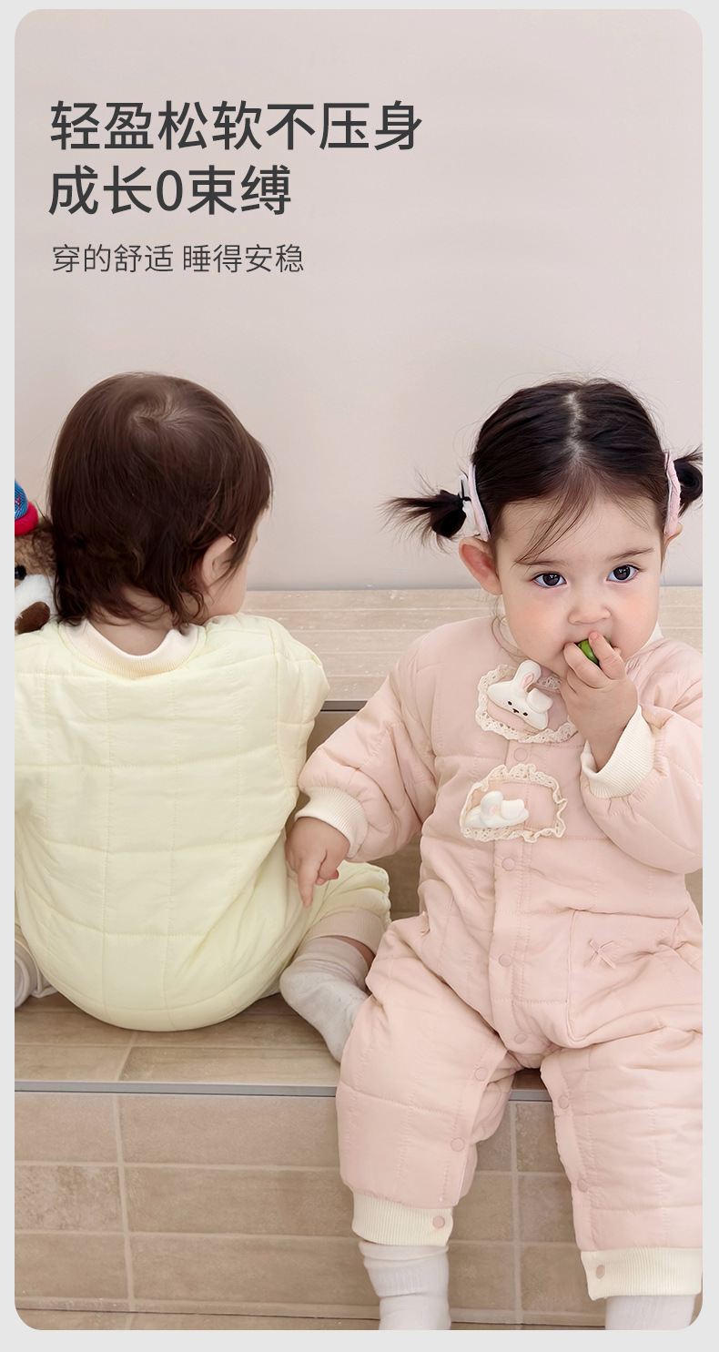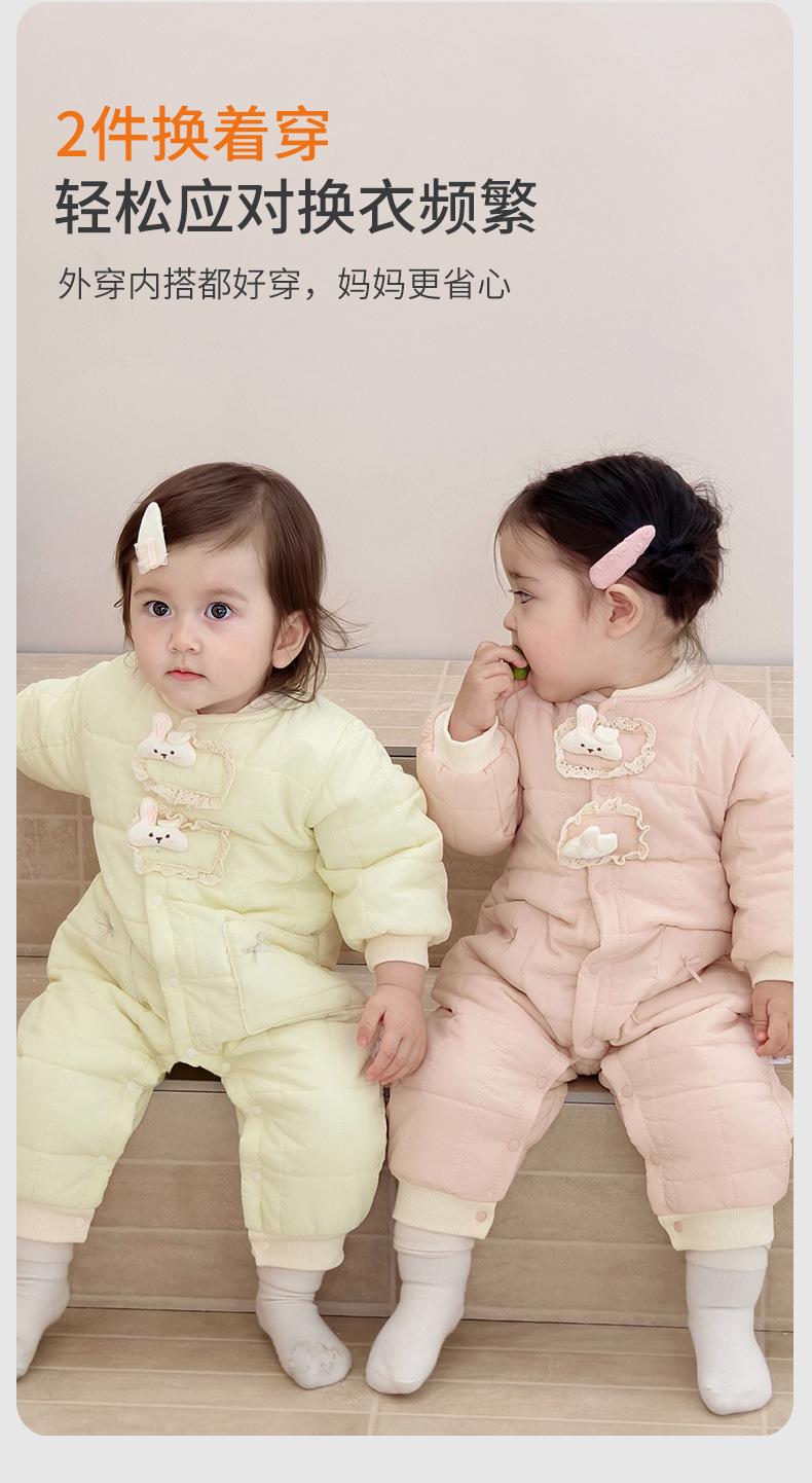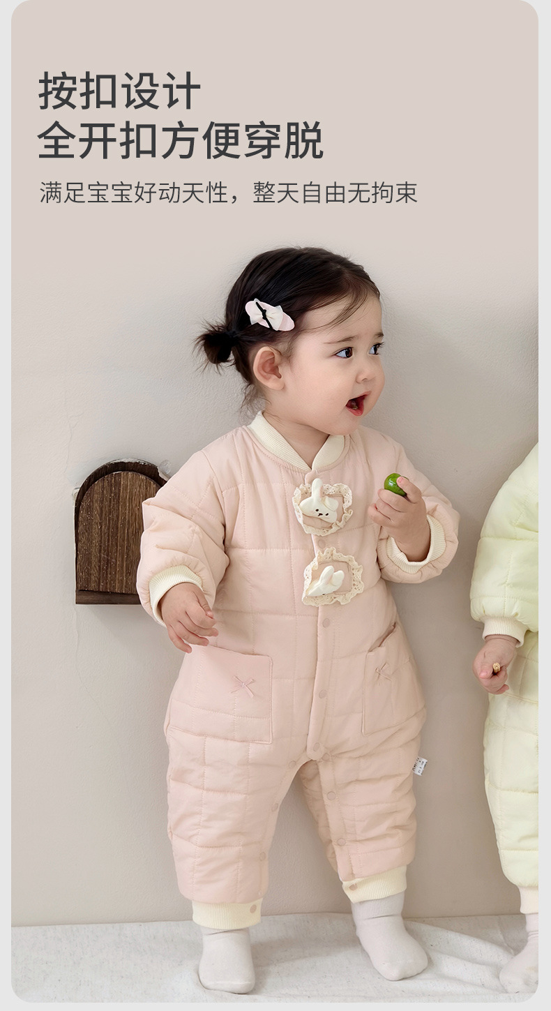 【超柔云朵棉!不闷透气会呼吸】婴儿衣服秋冬季新款女宝宝夹棉连体衣加厚满月新生儿外出抱衣爬服。hb