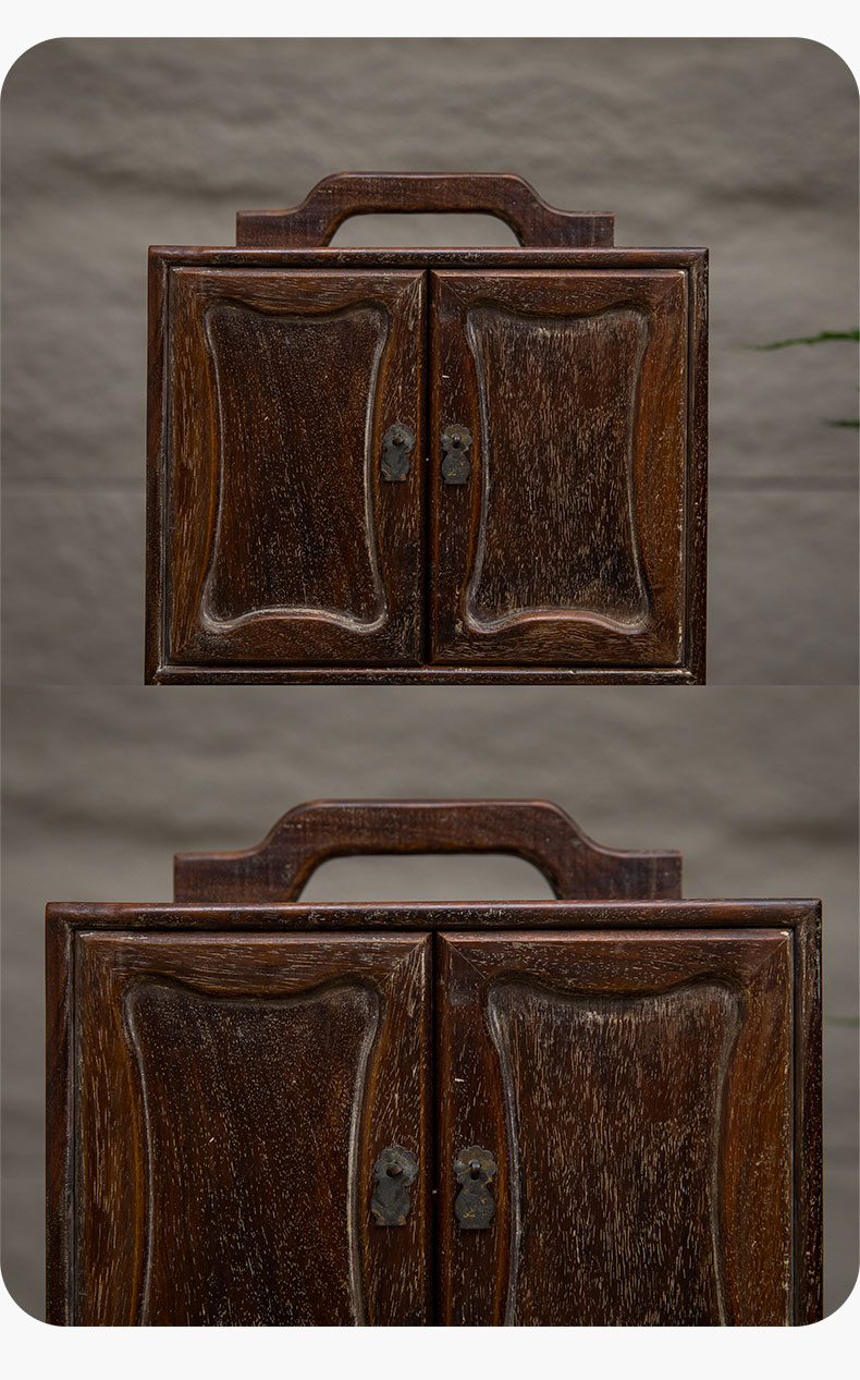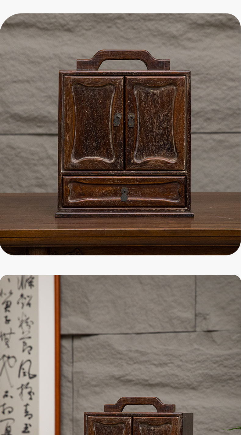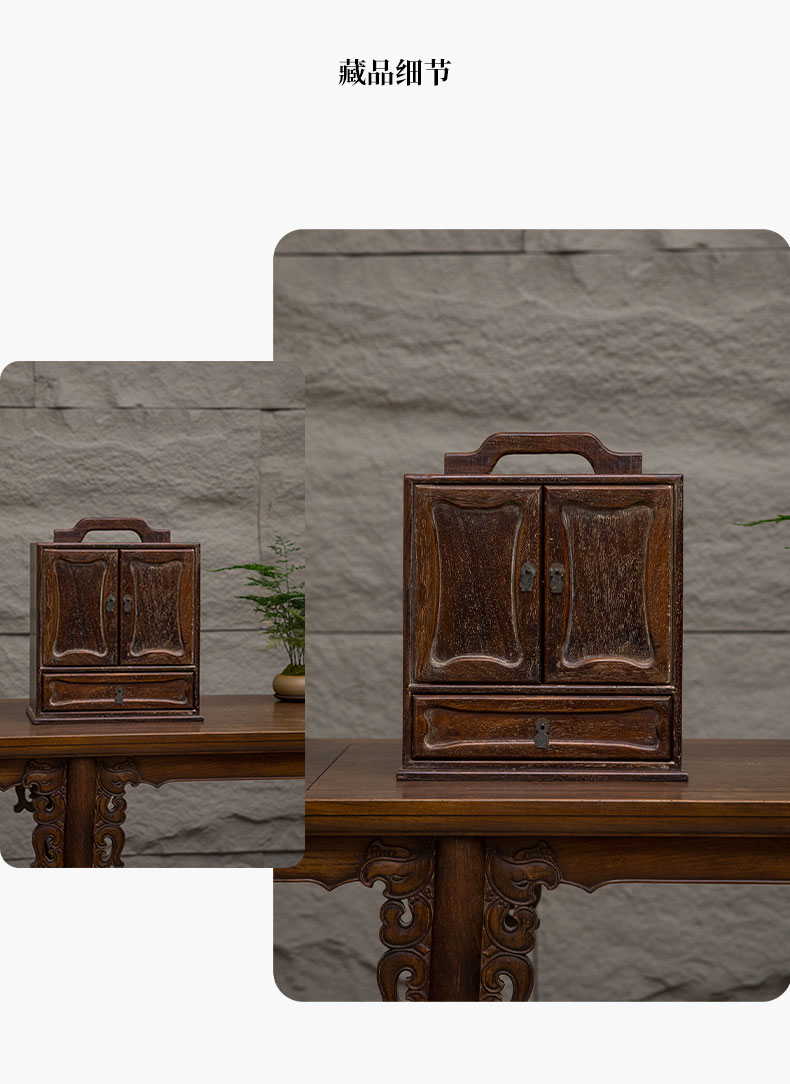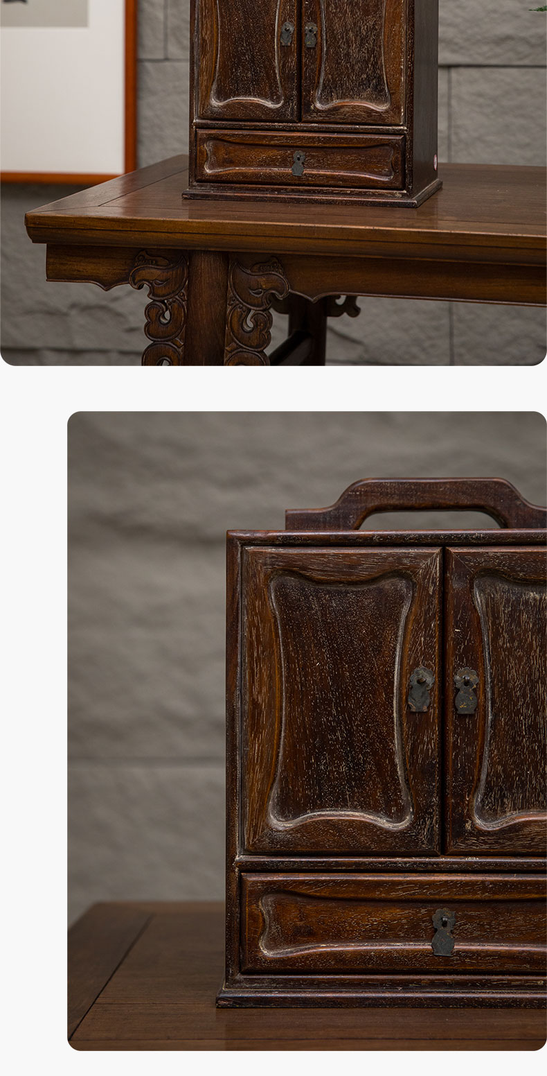 清 黄花梨镶竹丝编四抹门亮格柜摆件