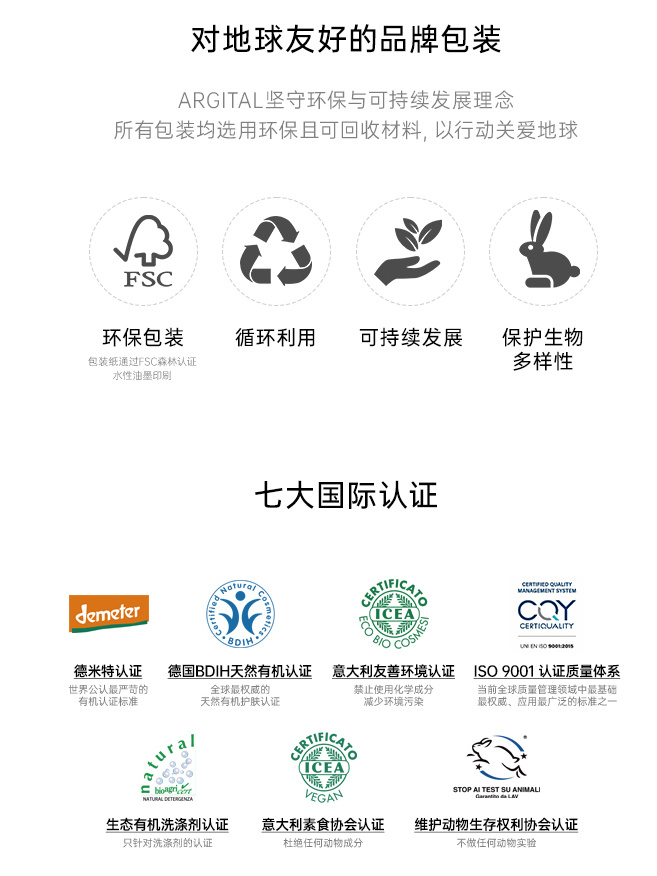 ARGITAL意大利有机品牌创立于1979年,致力于发展有机绿泥和植物精油对改善人体身心平衡的产品。