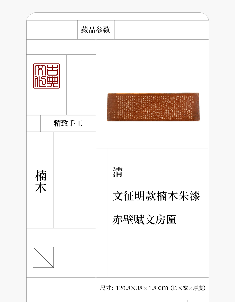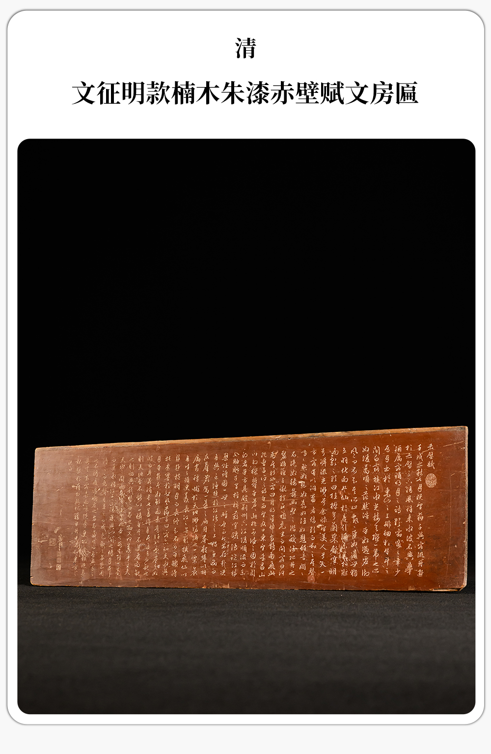 清 文征明款楠木朱漆赤壁赋文房匾