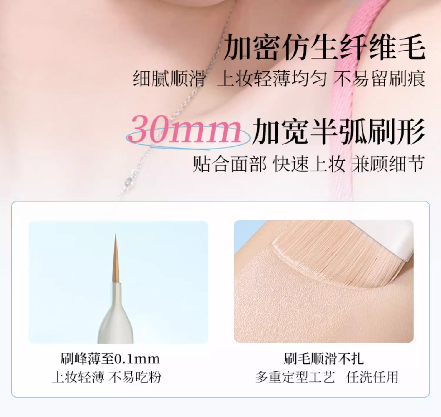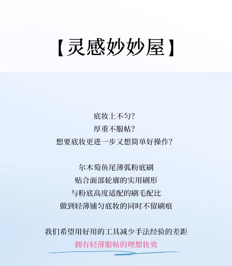 尔木萄鱼尾薄弧一字型粉底刷扁平头不吃粉刀锋无痕粉底液化妆刷子