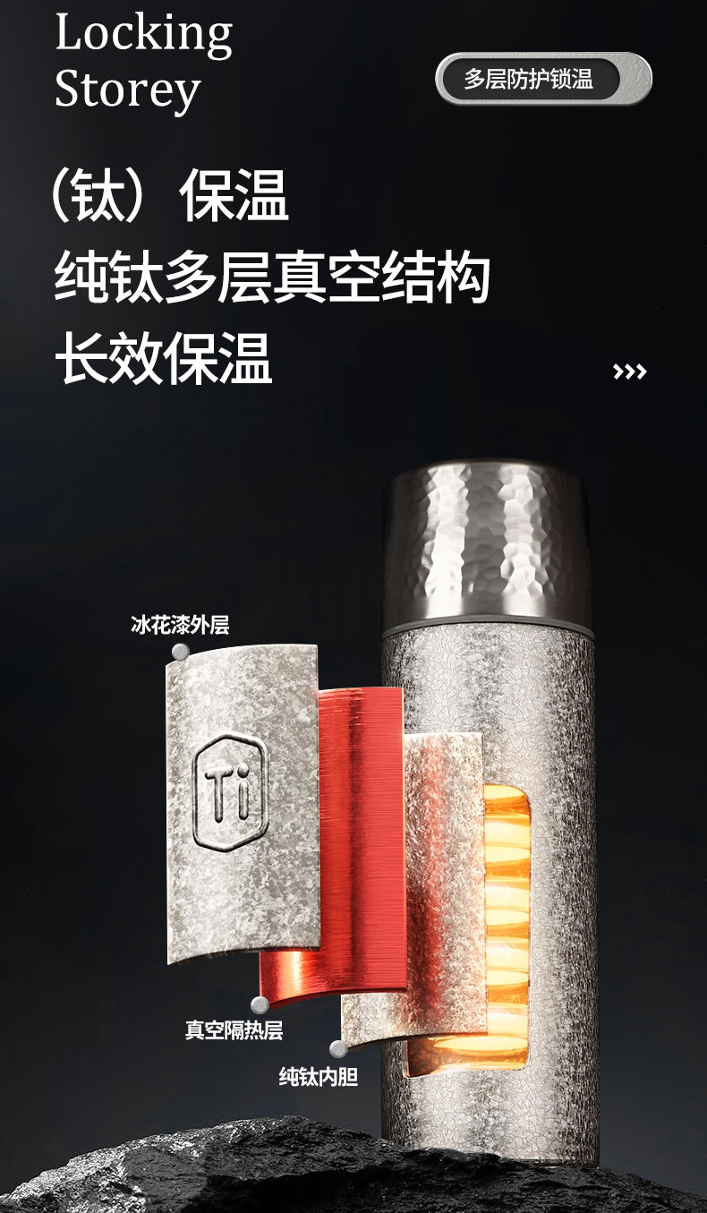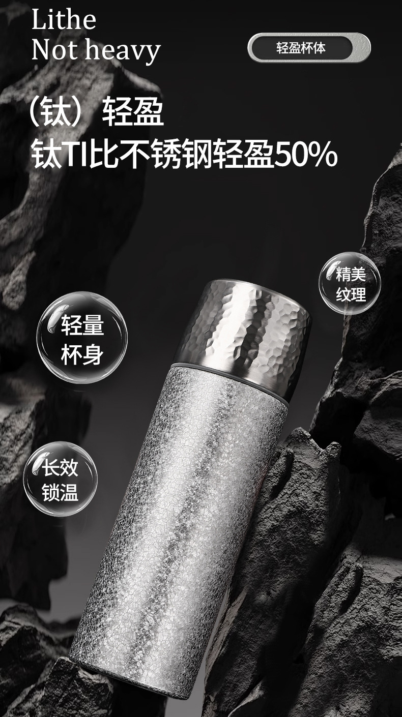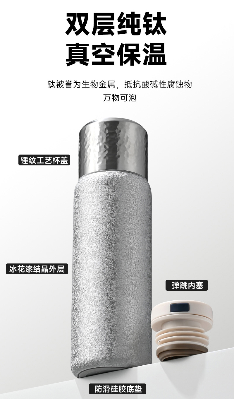 时岛弱碱水钛内胆保温杯,天然保鲜无异味,弱碱性碎水矿石0重金属0油漆抗菌保热保冷万物皆可泡